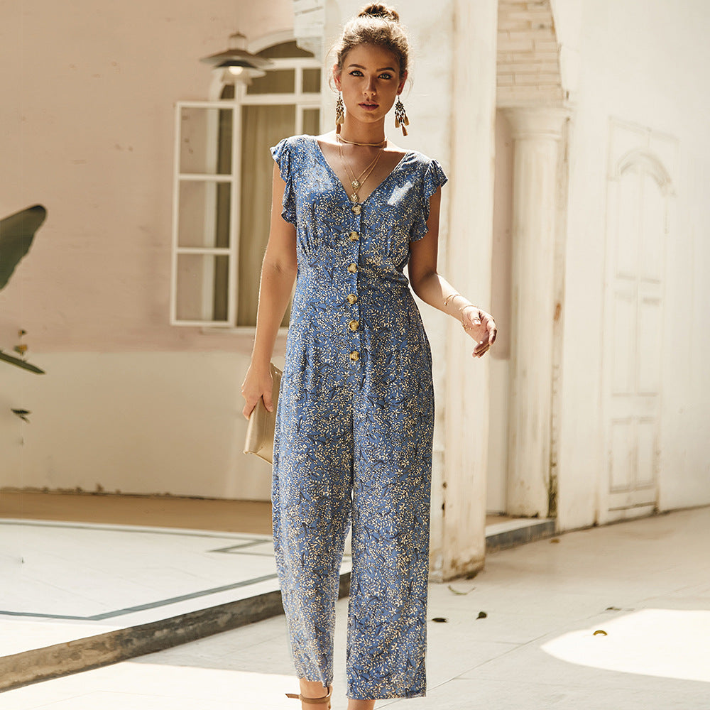 Beth Dutton Outfits Summer Floral Jumpsuit Casual Straight-Leg Cropped Pants