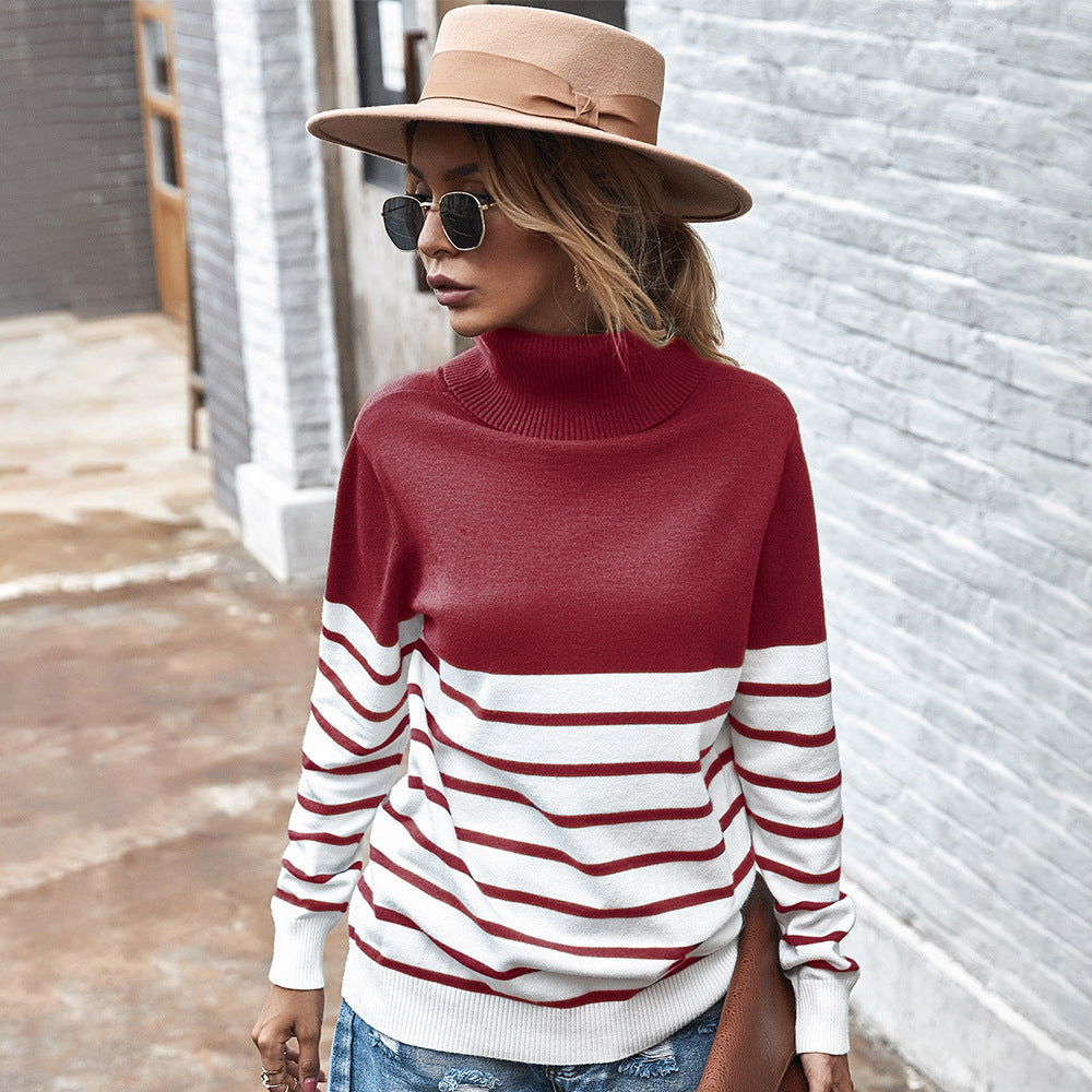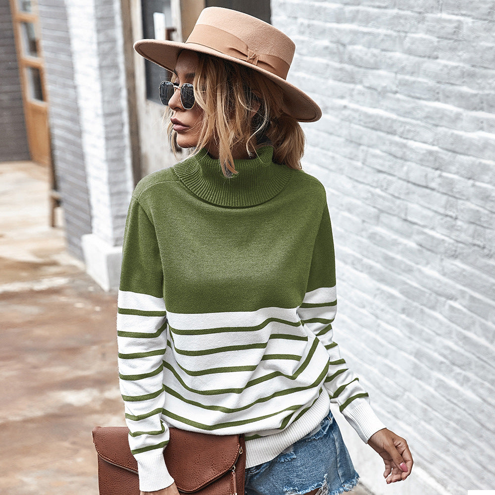 Beth Dutton Outfits Autumn and Winter Turtleneck Striped Sweater Women's Top