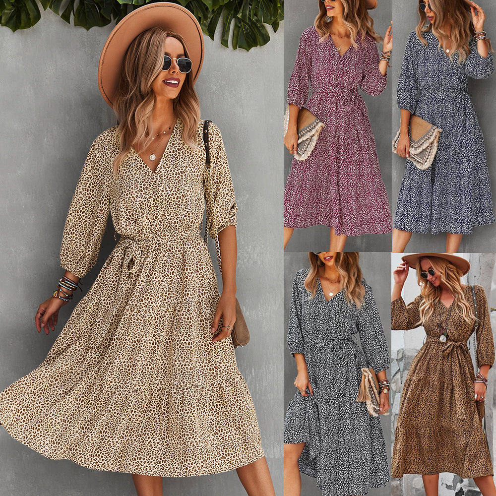 Beth Dutton Bohemian Winter Dress Midi Dresses Waist Slimming Autumn and Winter Large Swing Floral Skirt