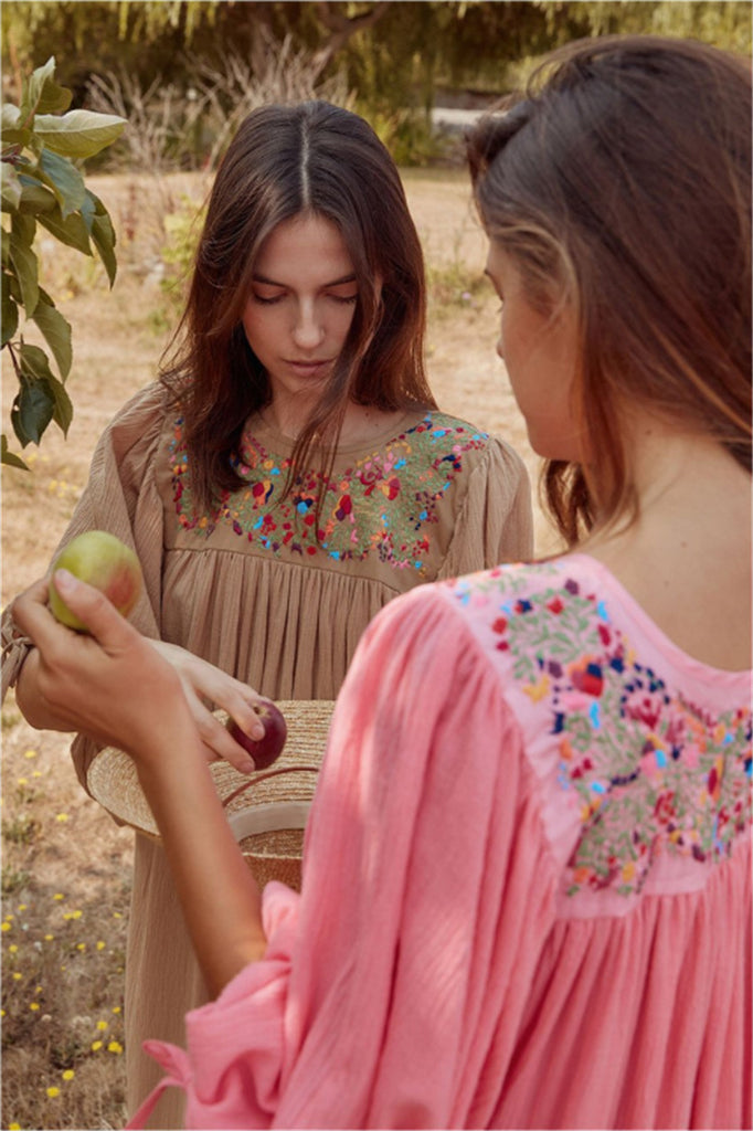 Beth Dutton Bohemian Winter Dress Midi Dresses Embroidered Dress Puff Sleeve Loose Vacation Long Dress
