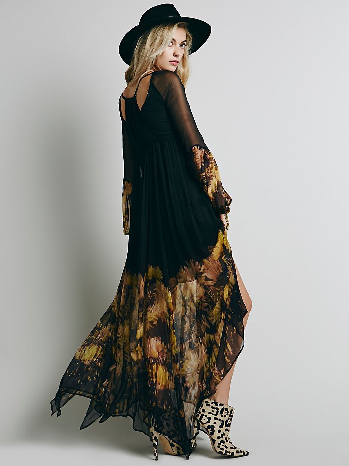 Beth Dutton Bohemian Winter Dress Maxi Dresses Pleated Flowy Long Dress Irregular Hem Flower Print Long Sleeve Dress
