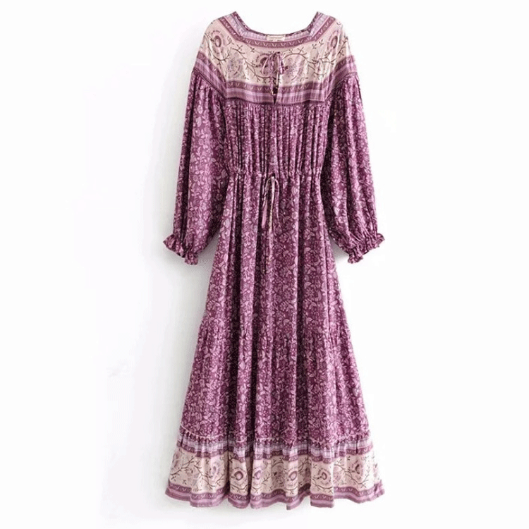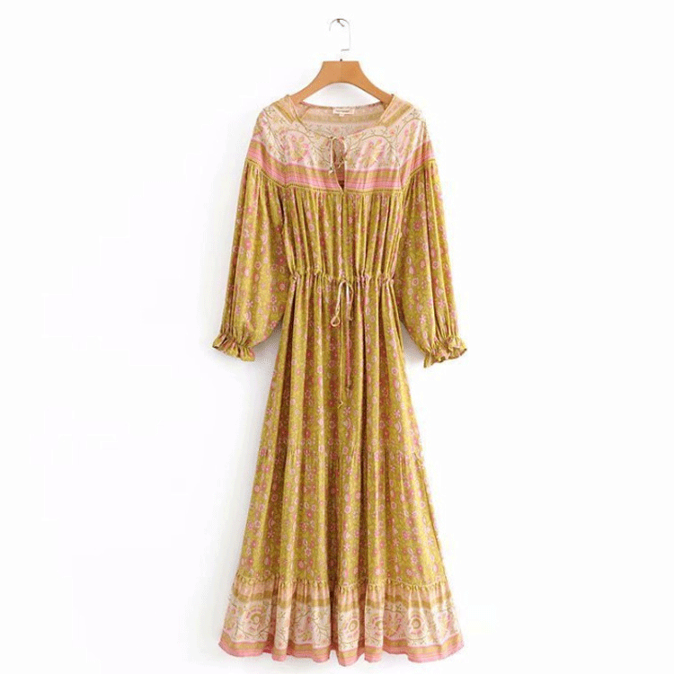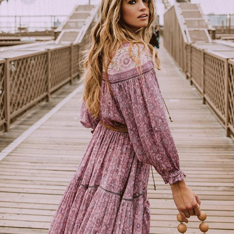 Beth Dutton Bohemian Dress Winter Autumn Midi Dresses Hollow out Large Swing Elastic Waist Dress