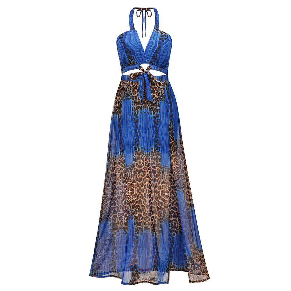 Beth Dutton Bohemian Dress Summer Spring Midi Dresses Sexy Leopard Print Backless Dress Chiffon Maxi Dress