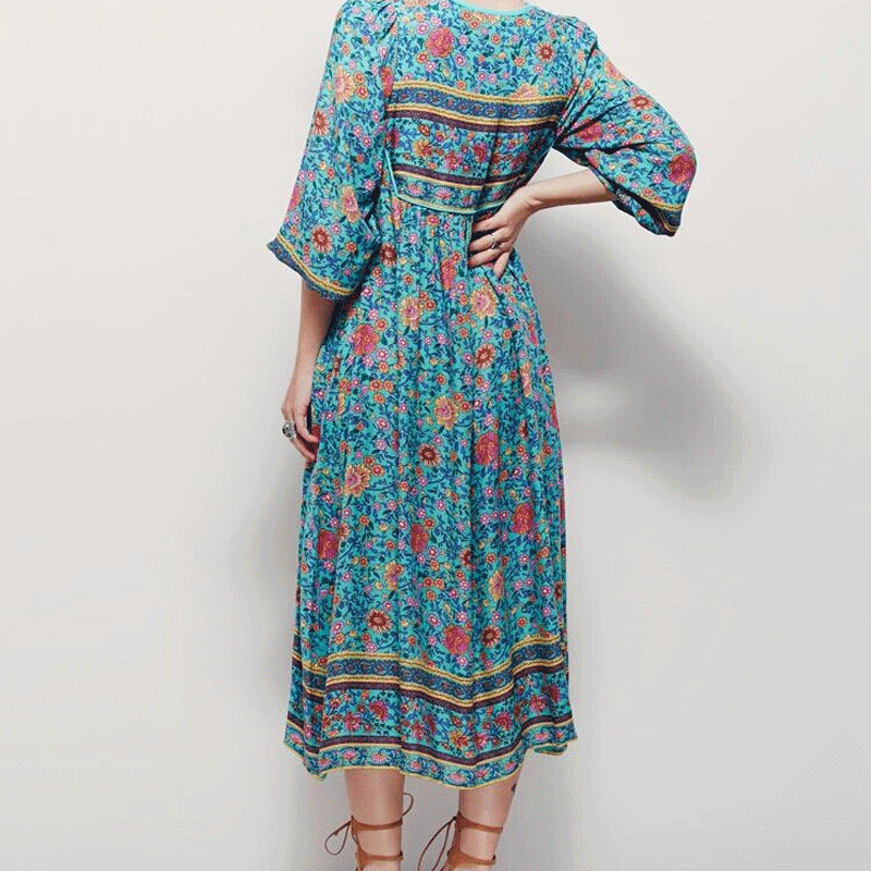 Beth Dutton Bohemian Dress Summer Spring Midi Dresses Printed Women's Long Dress