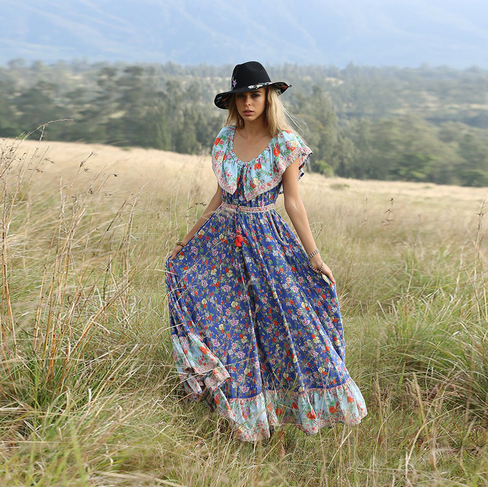 Beth Dutton Bohemian Dress Summer Spring Midi Dresses Beach Vacation Style Short Sleeve Large Swing Pleated Printed Dress