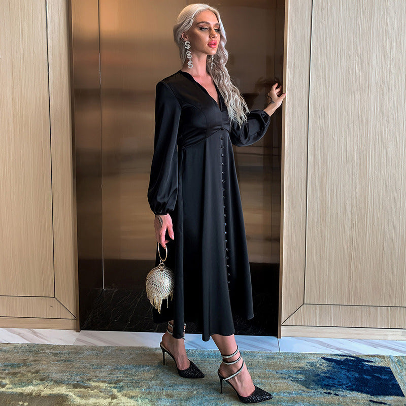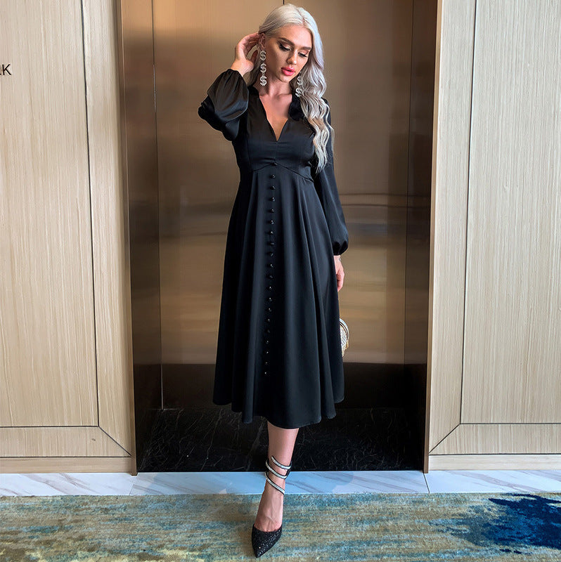 Bohemian Beach Dress Black V-neck Evening Dress Chiffon