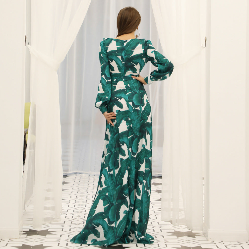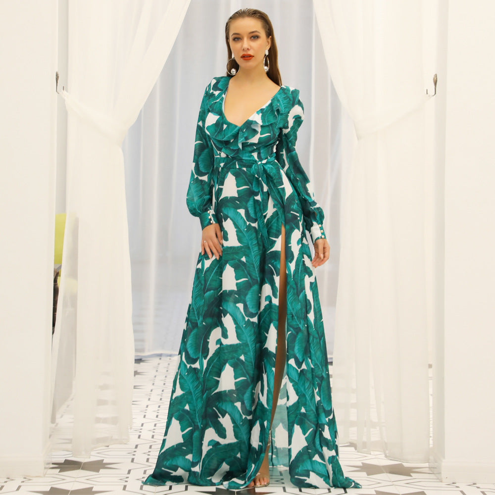 Bohemian Beach Dress Deep V Split Printed Lace up