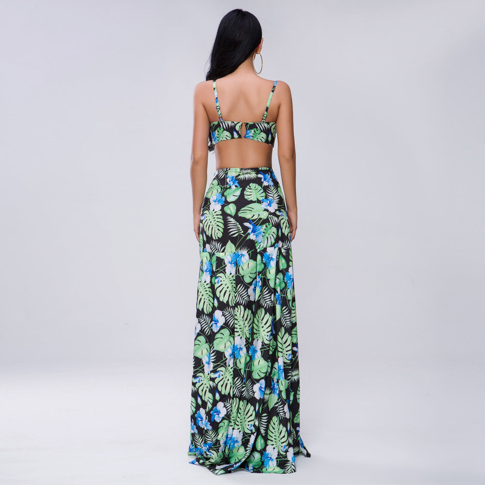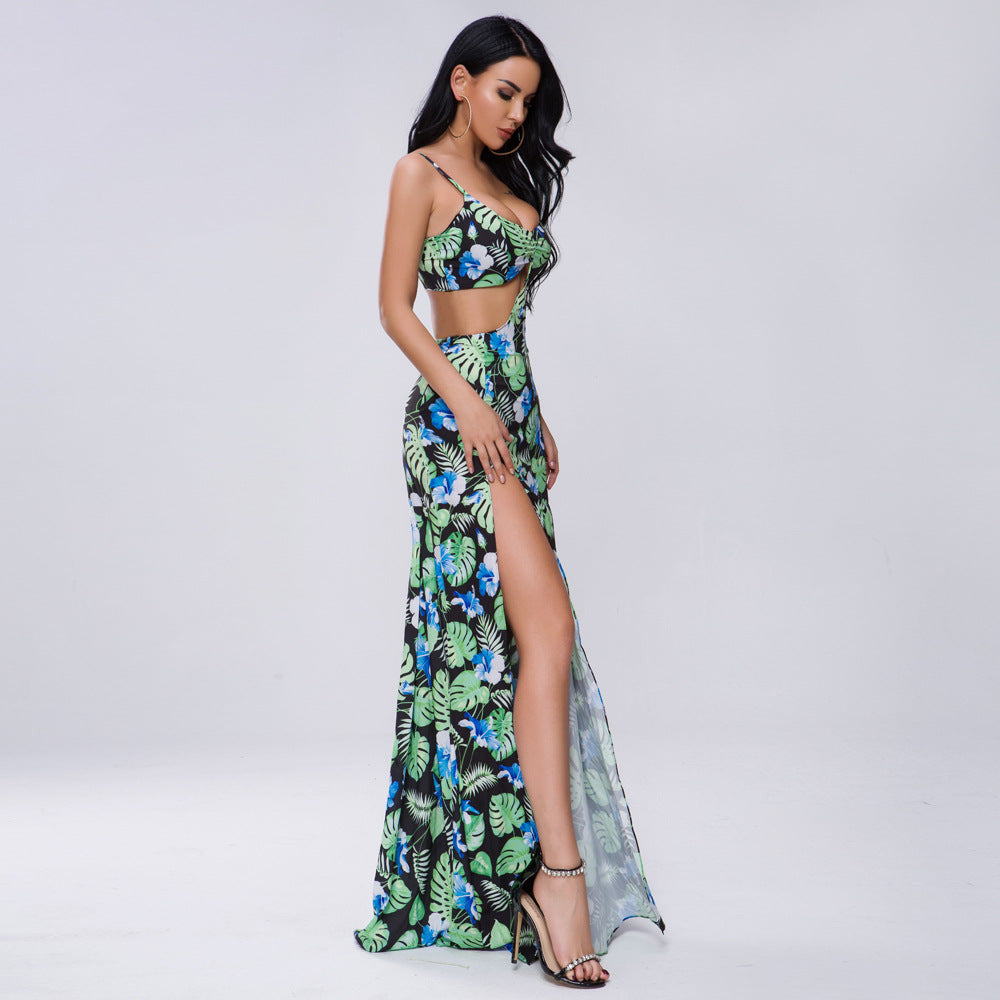 Bohemian Beach Dress off-the-Shoulder Strap Split Print