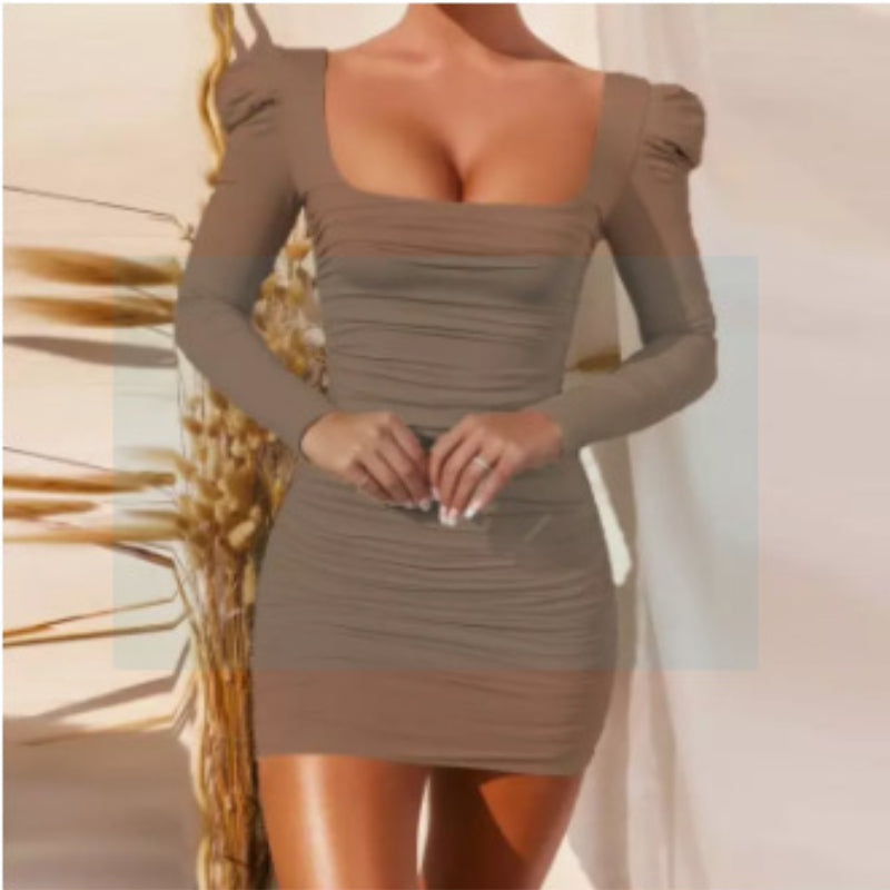 Dakota Johnson Red Mini Dress Long Sleeve Square-Neck Backless