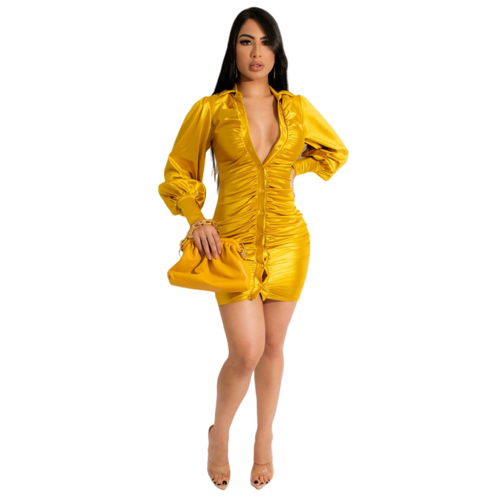 Dakota Johnson Red Mini Dress High-Gloss Sexy Button Closure