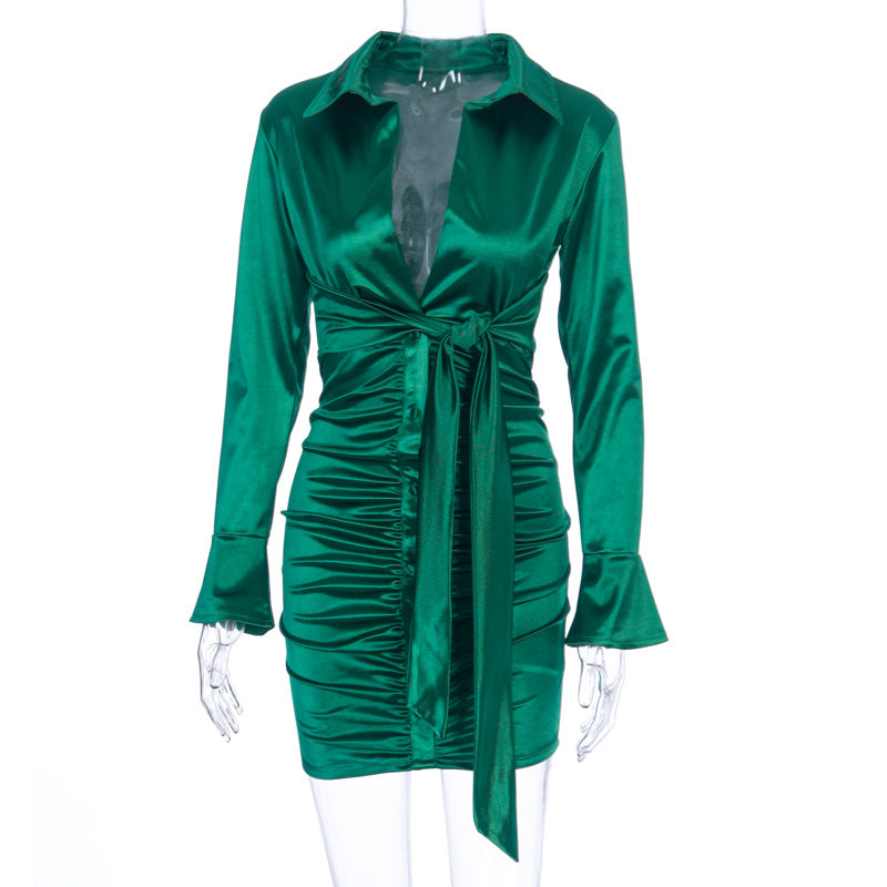 Dakota Johnson Red Mini Dress Pleated Long Sleeve Lace-up