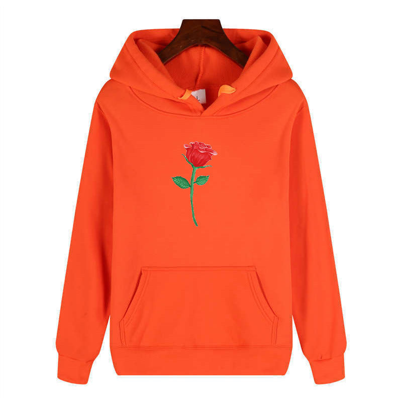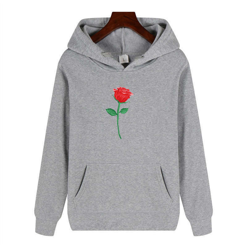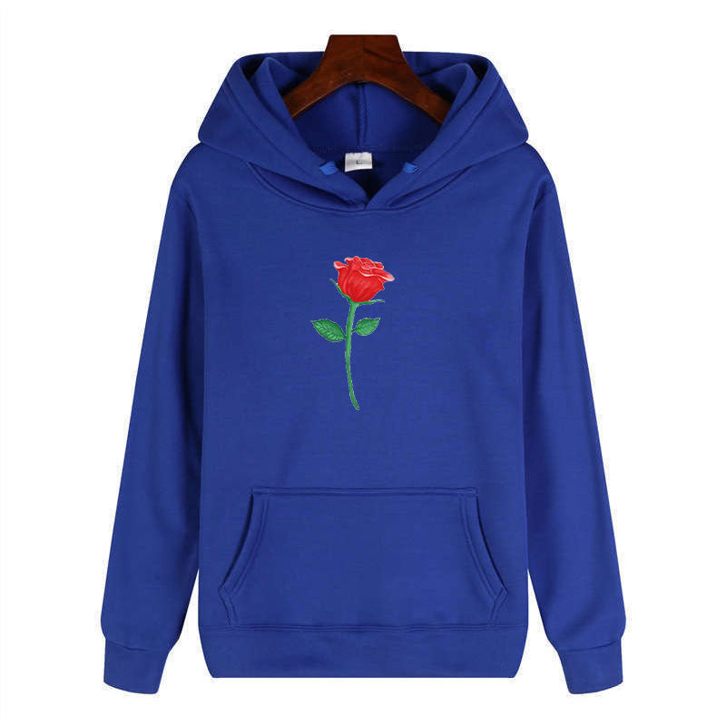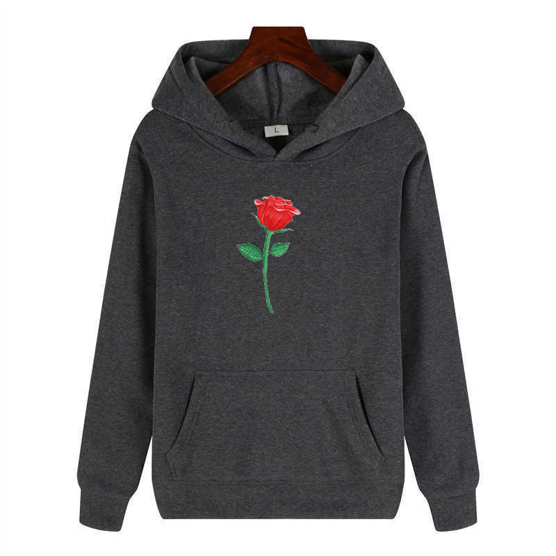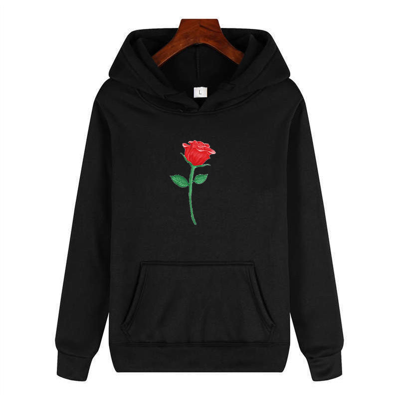 Black Rose Hoodie Autumn and Winter Casual Jacket Long-Sleeved Hooded Sweater Rose