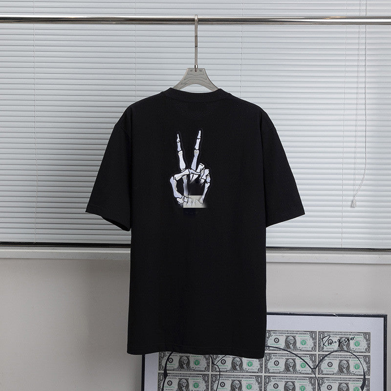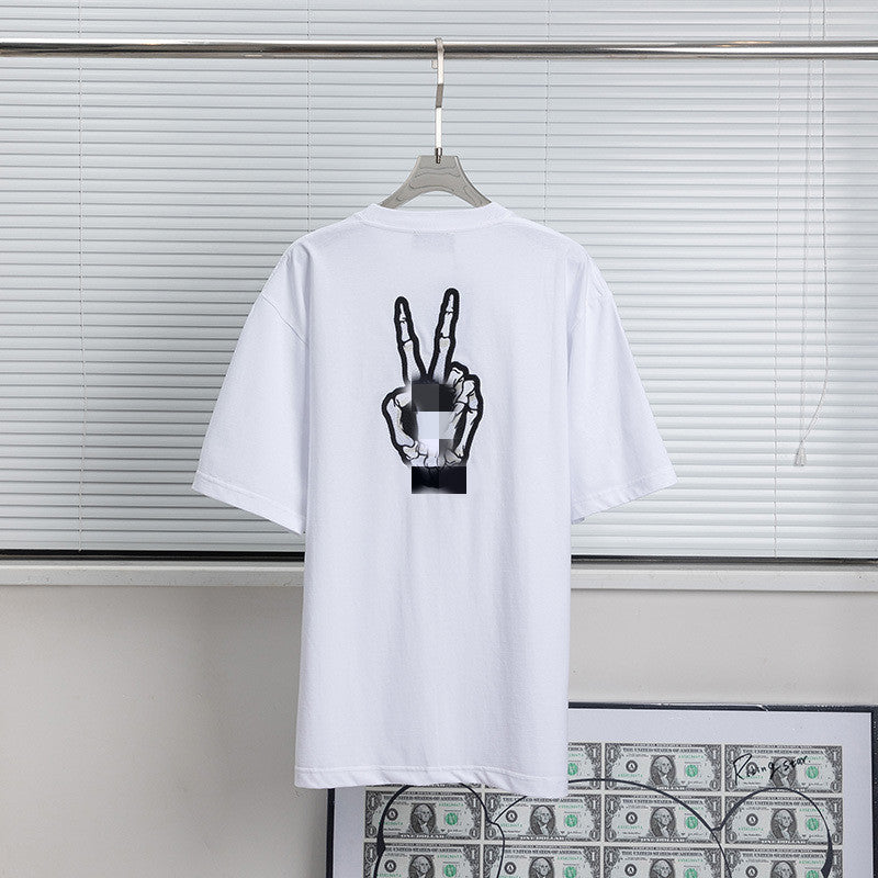 Drippy Hoodies Dissolved Smiley Face Finger Embroidery Short Sleeve Men's and Women's T-shirt