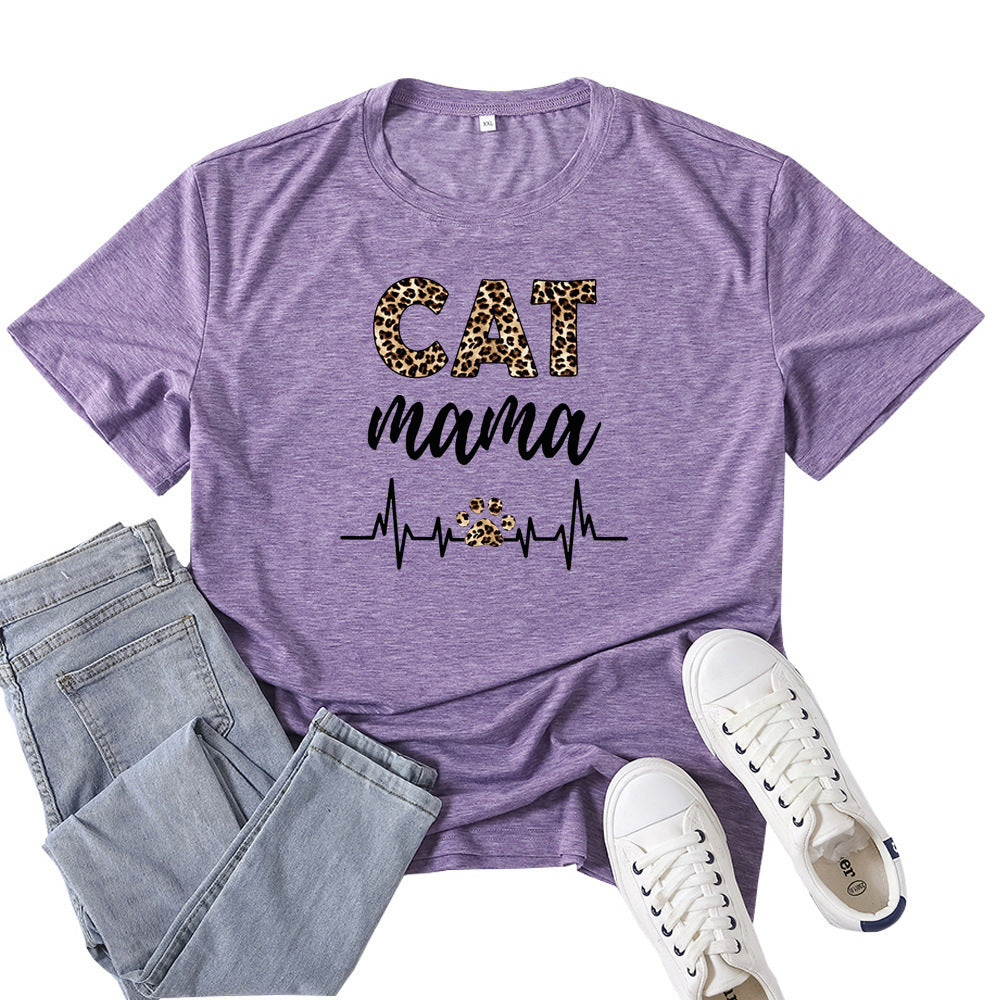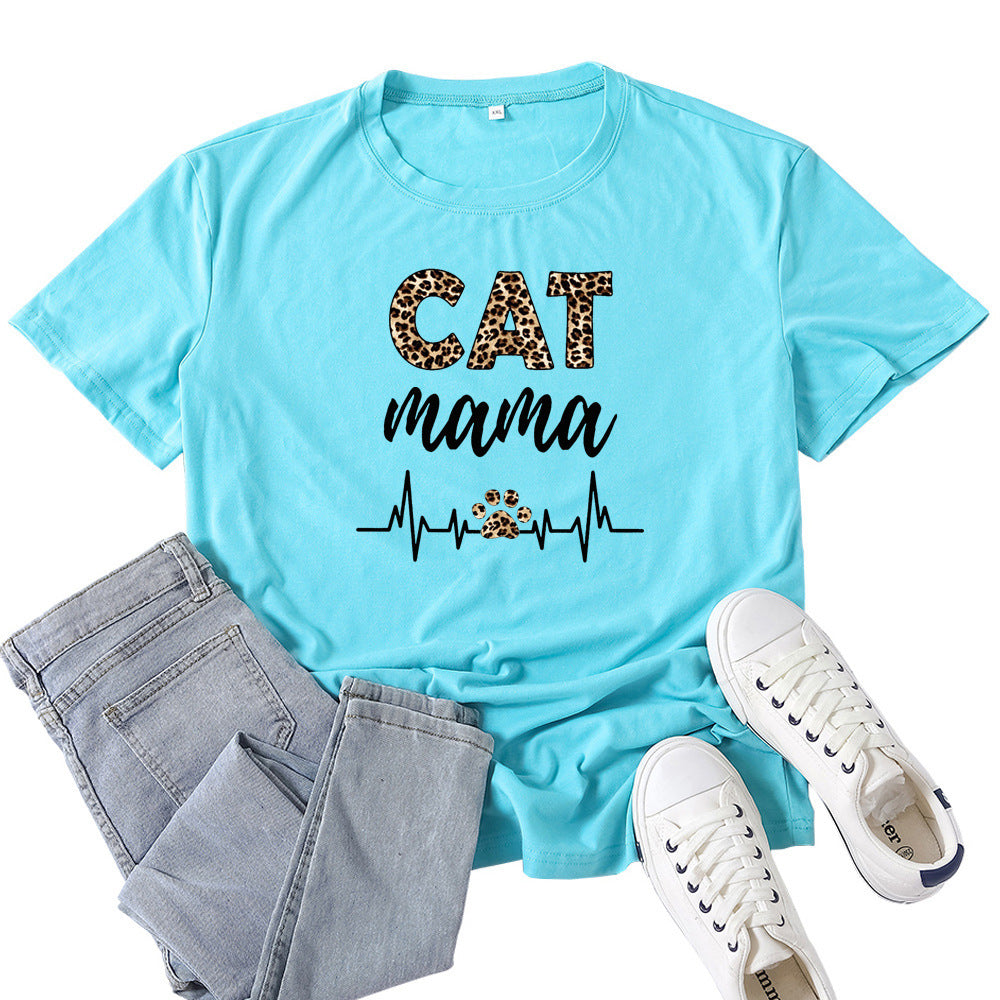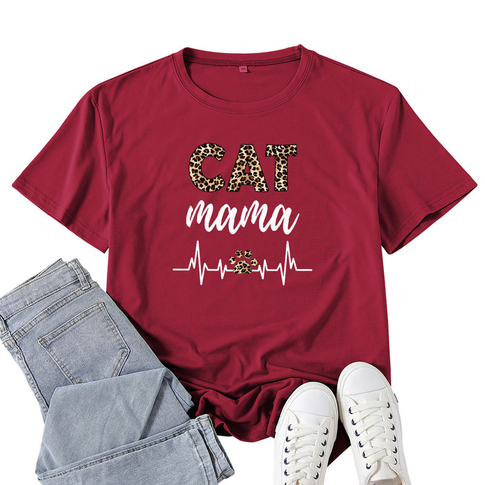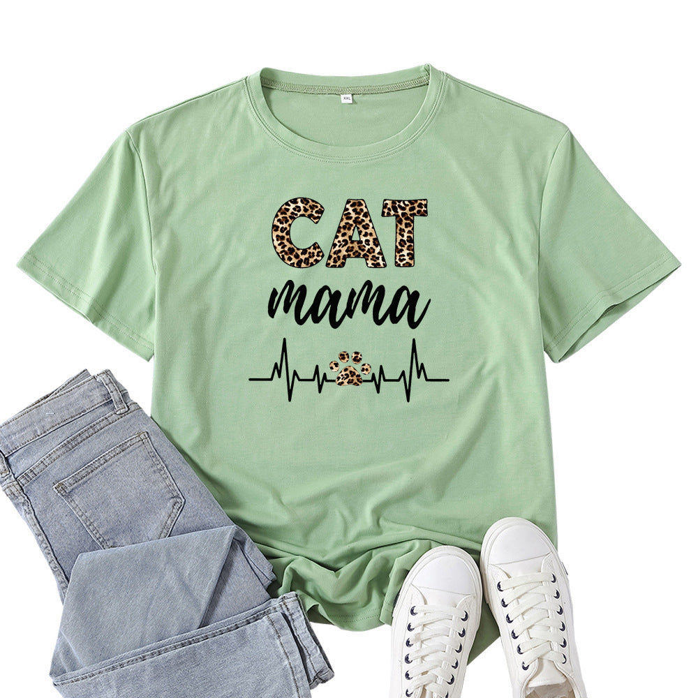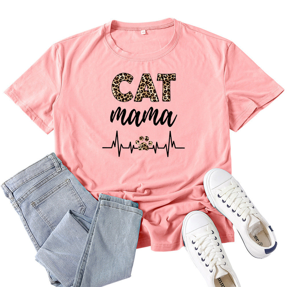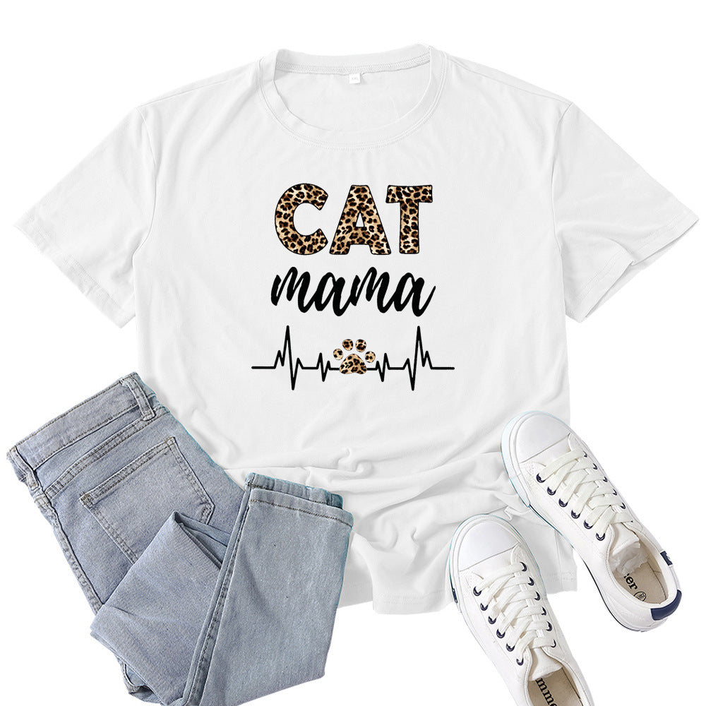 Boy Mama T Shirts Leopard Print Cat Mama Letter Print T-shirt