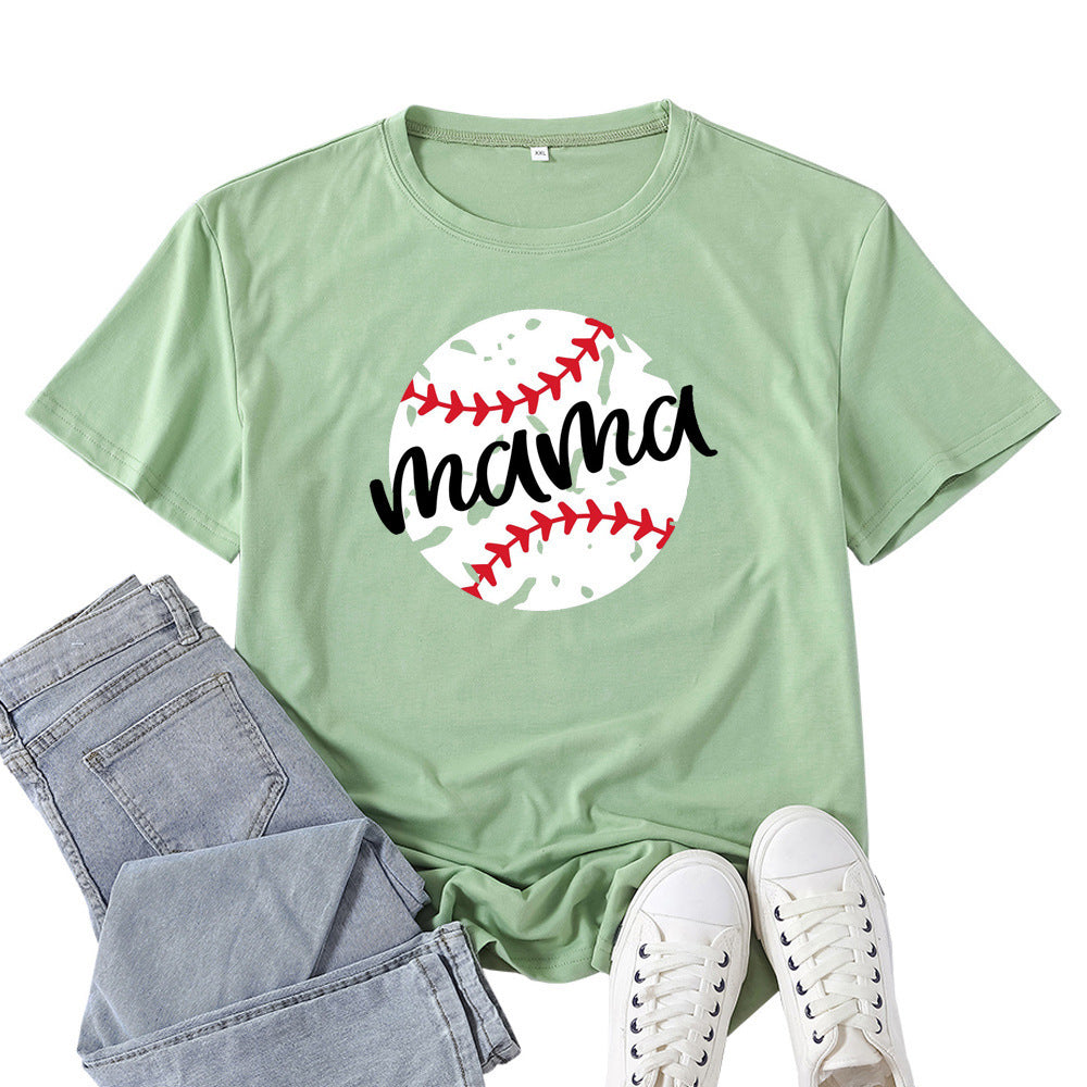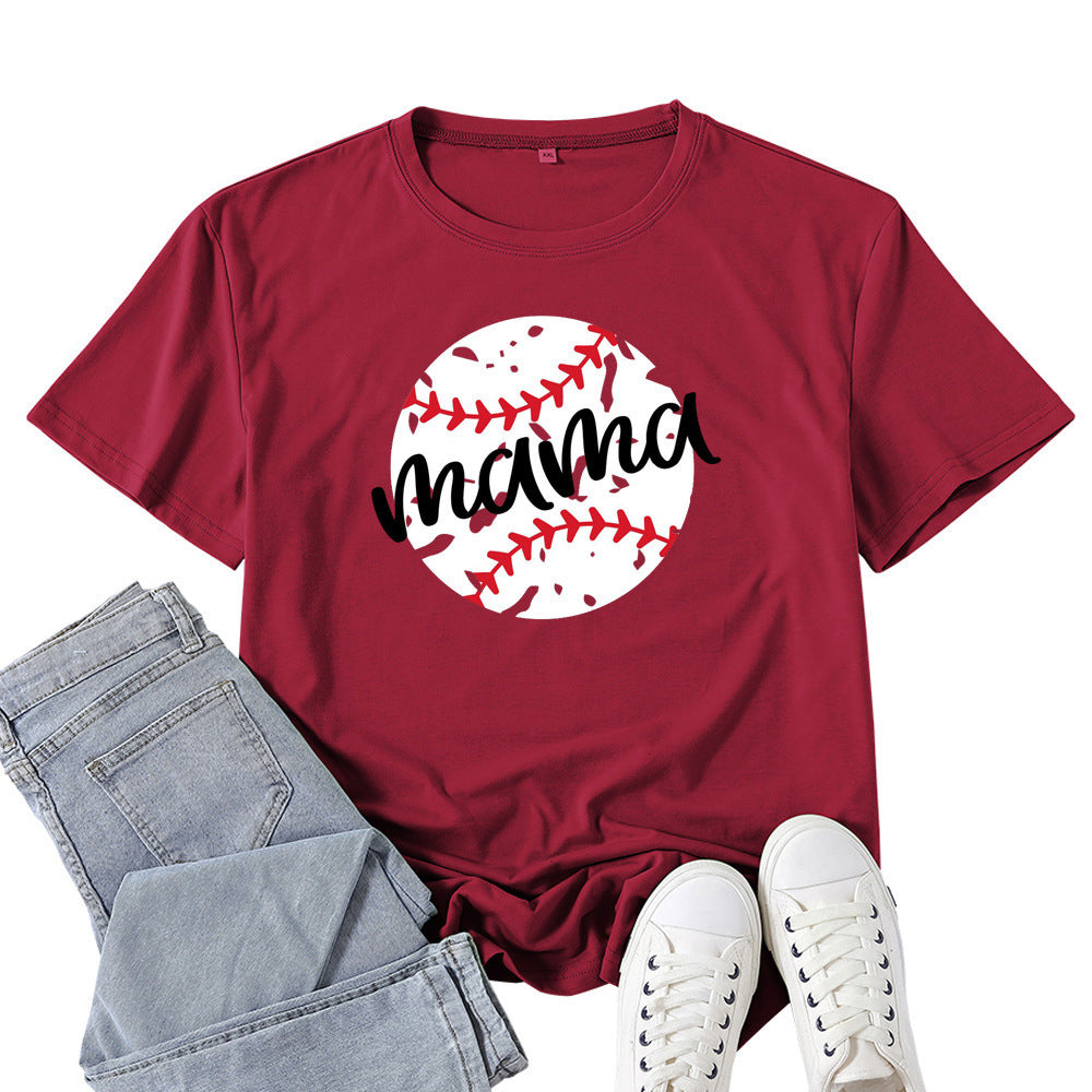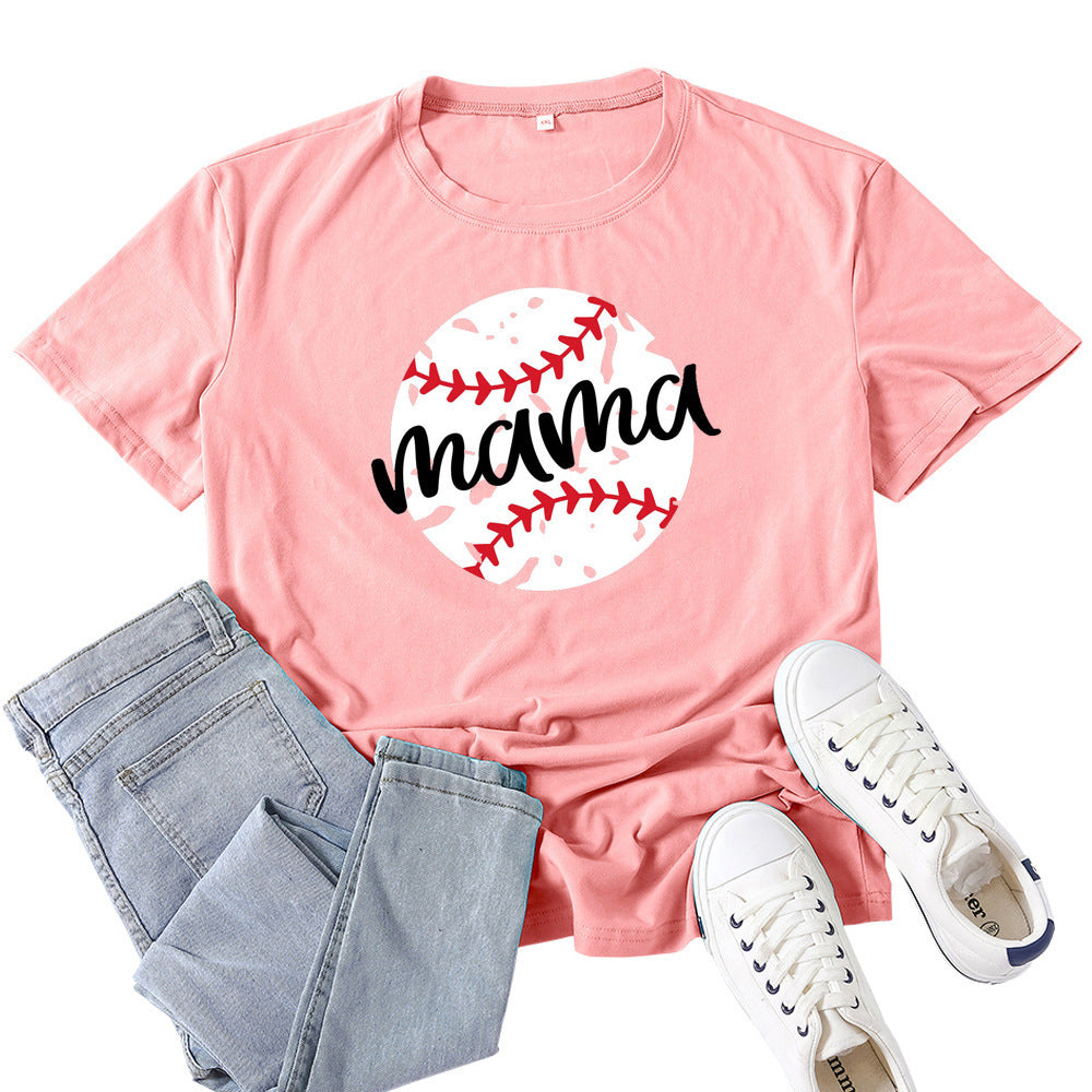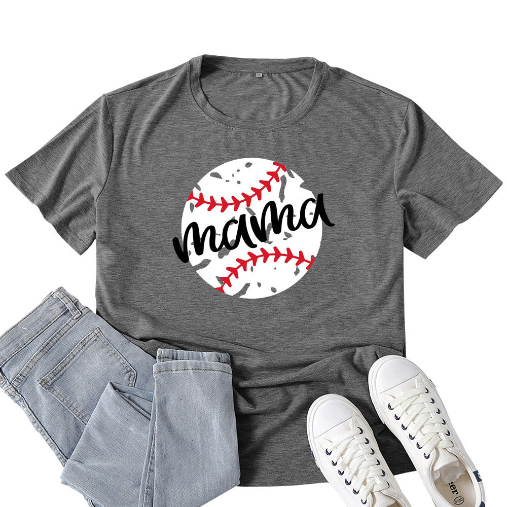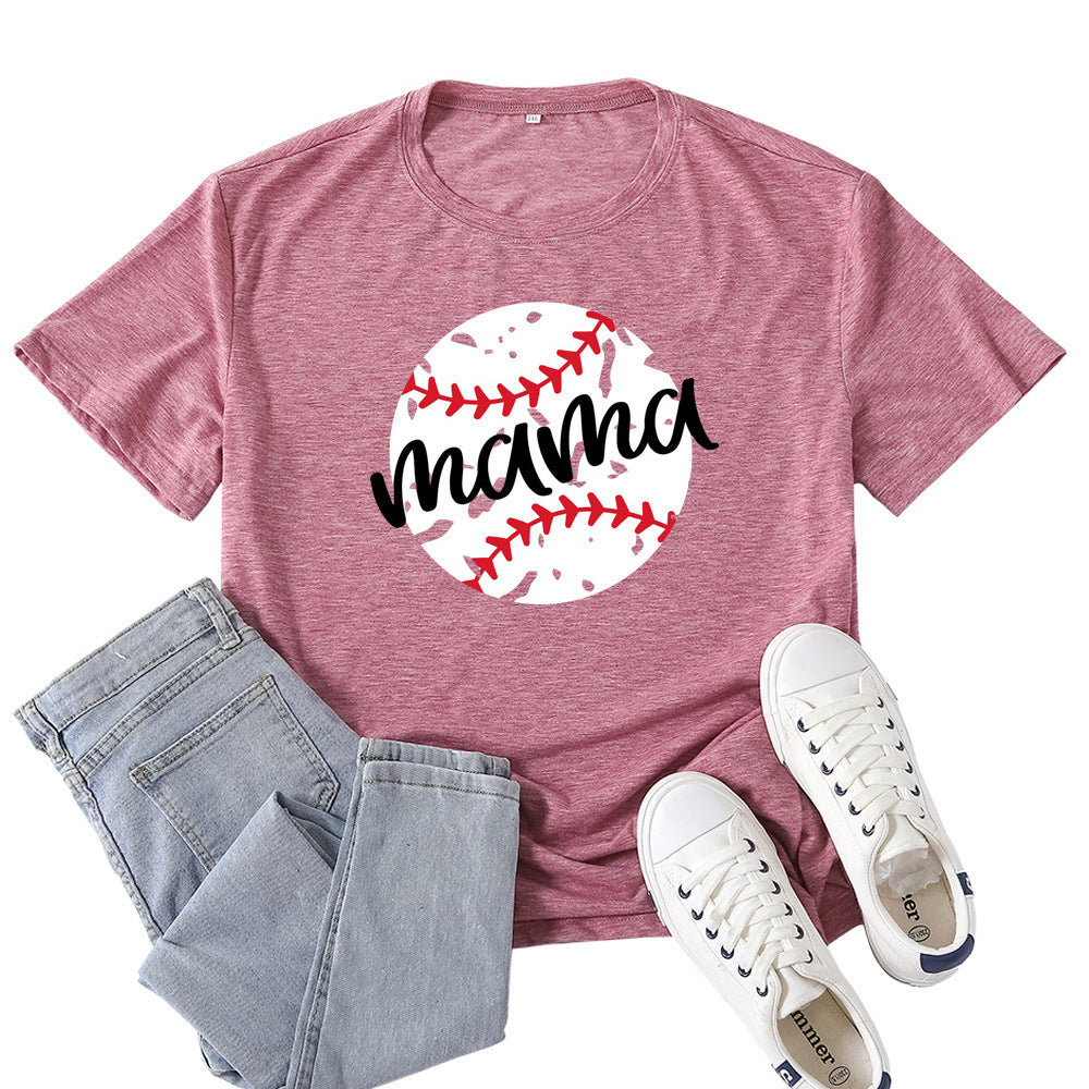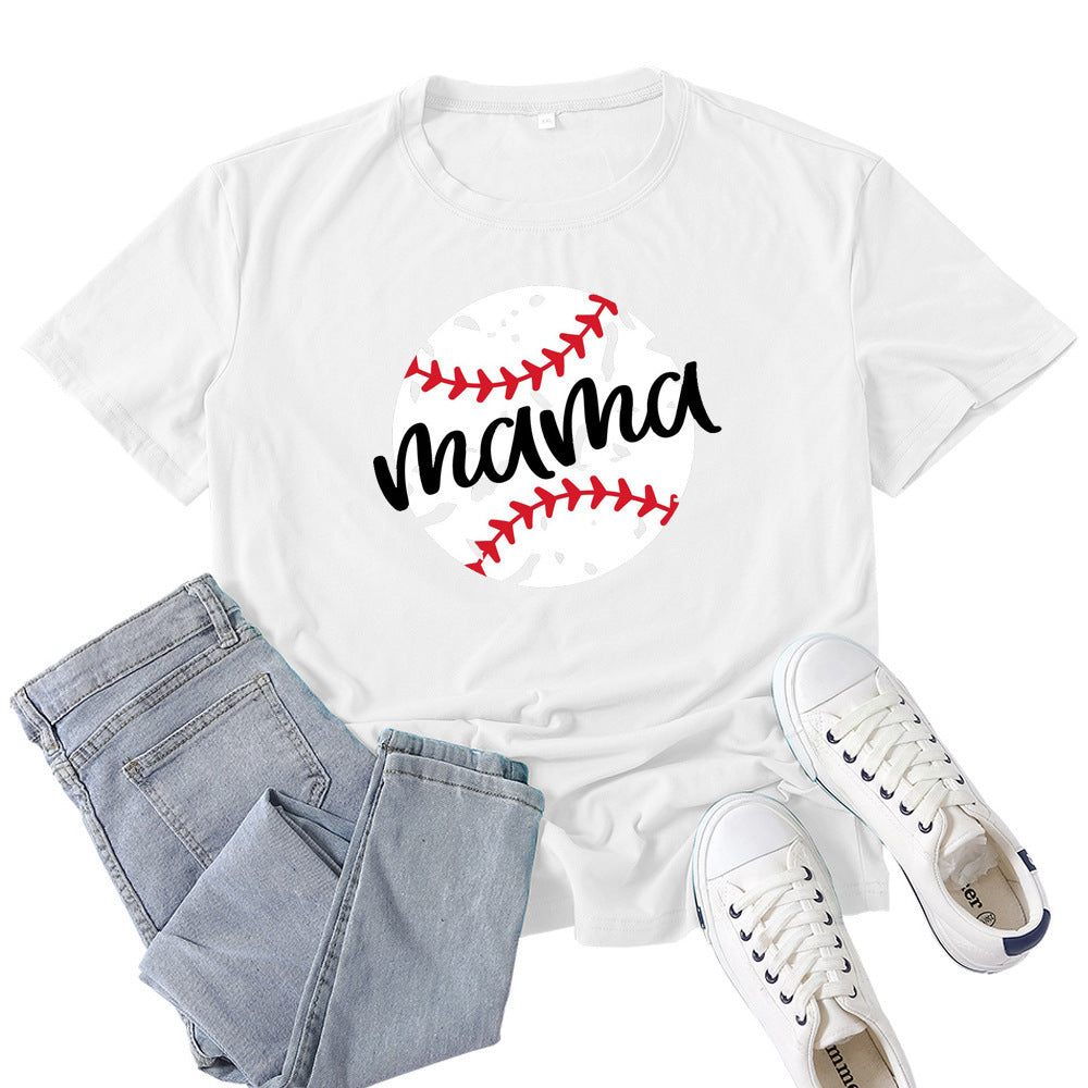 Boy Mama T Shirts Baseball Mama Pattern Printed T-shirt