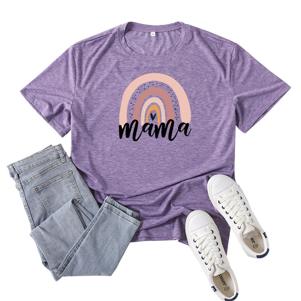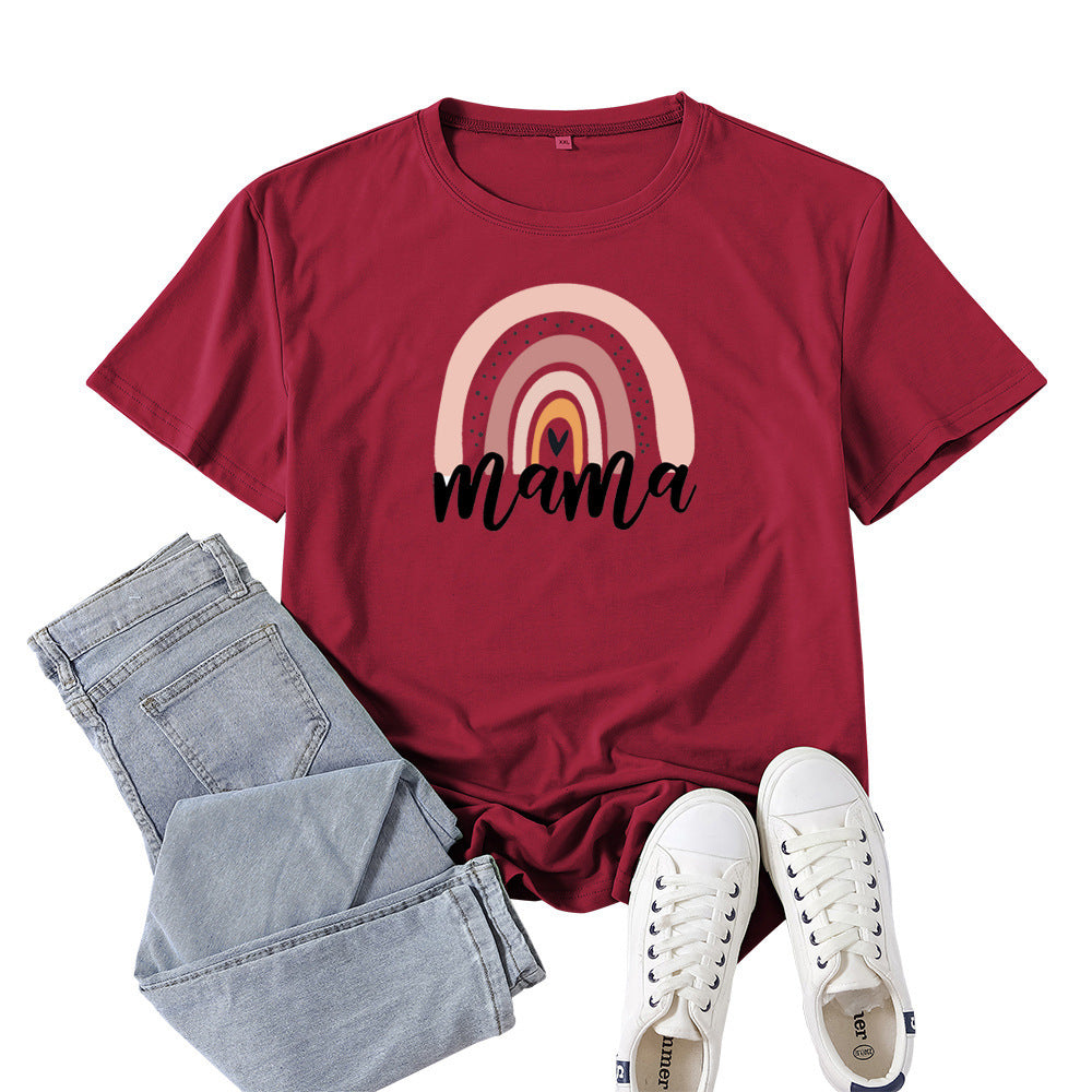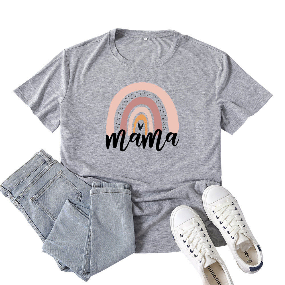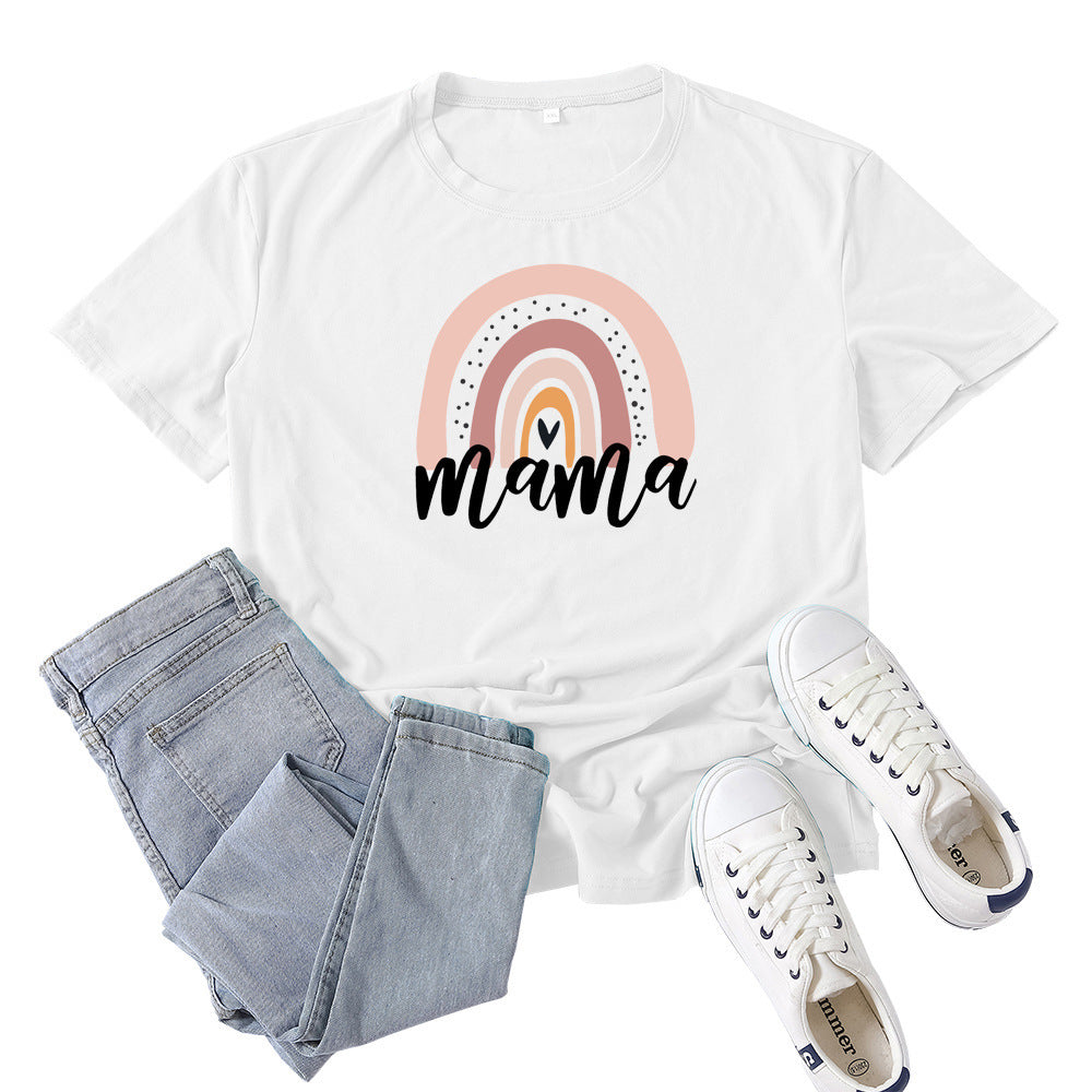 Boy Mama T Shirts Rainbow Mama Pattern Printed Short Sleeve T-shirt
