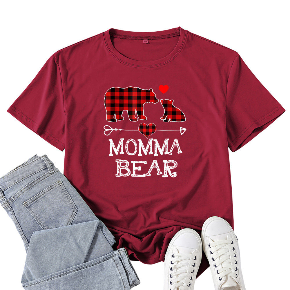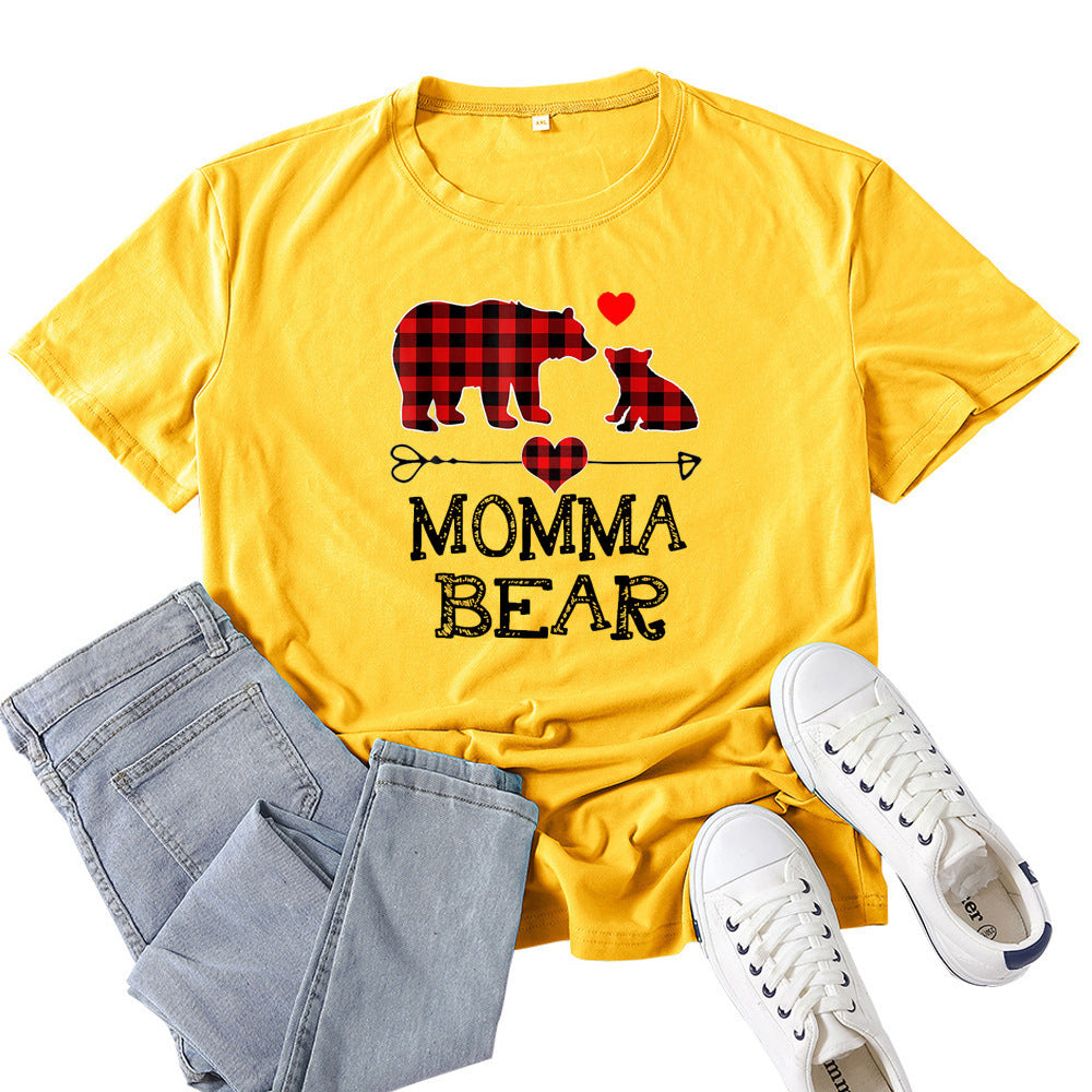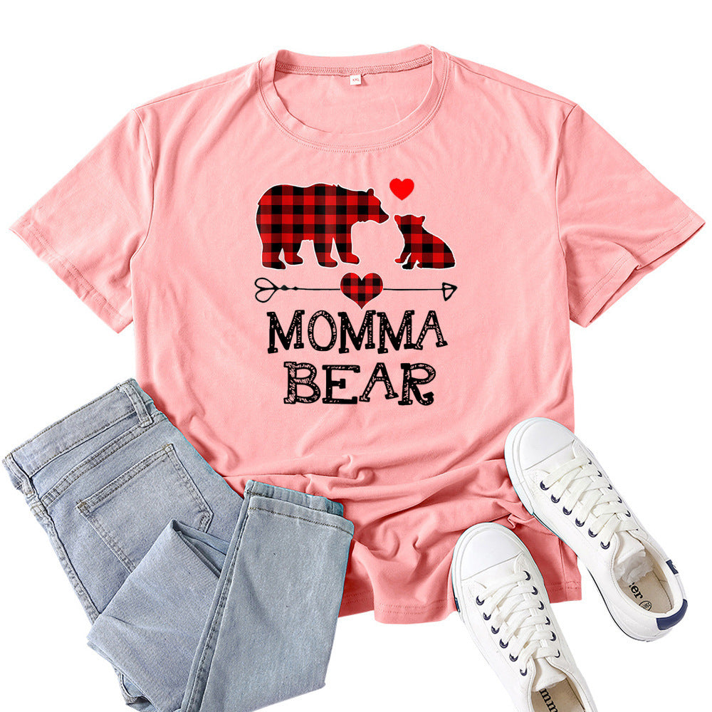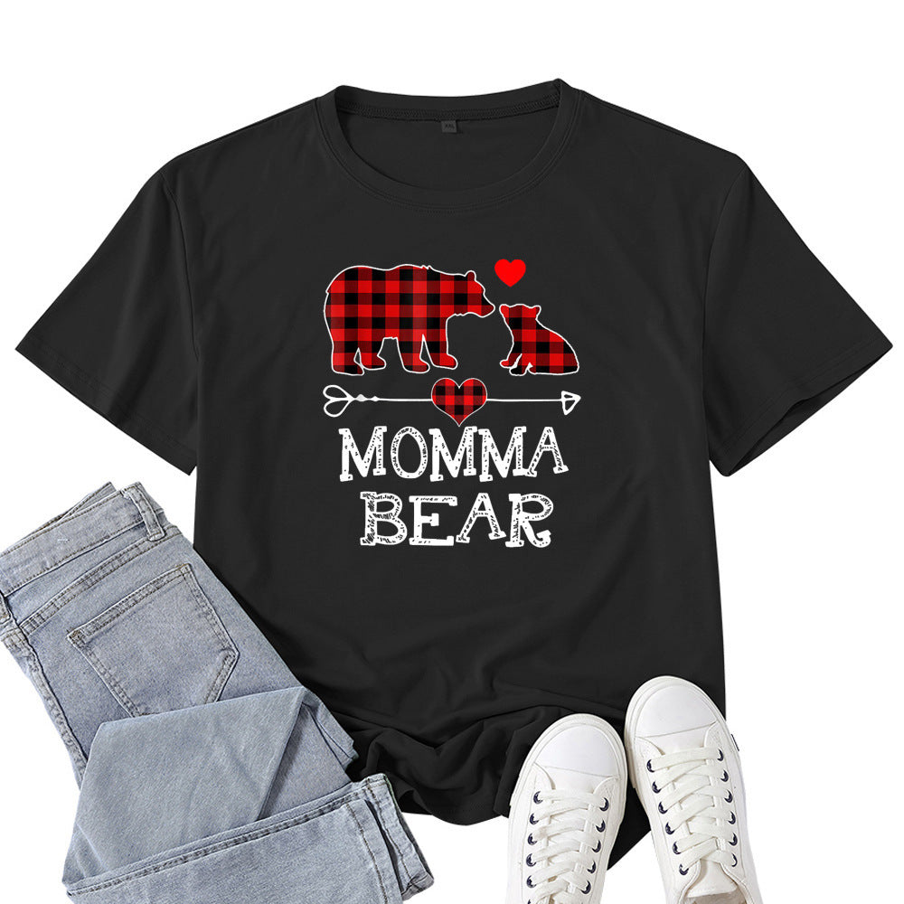Boy Mama T Shirt Mama Bear Mother Pattern Printed Short Sleeve T-shirt