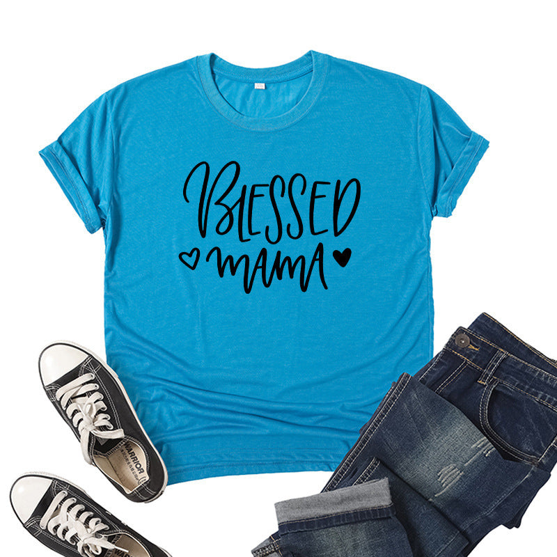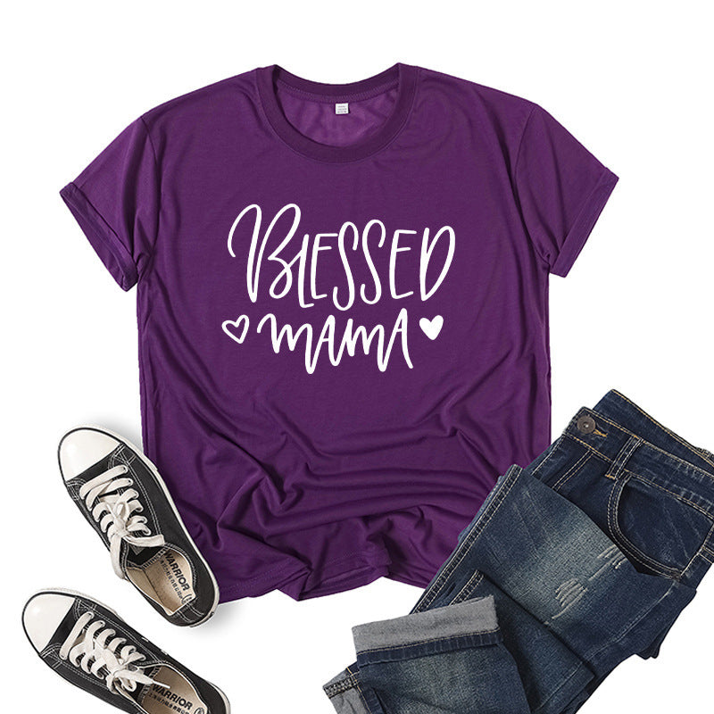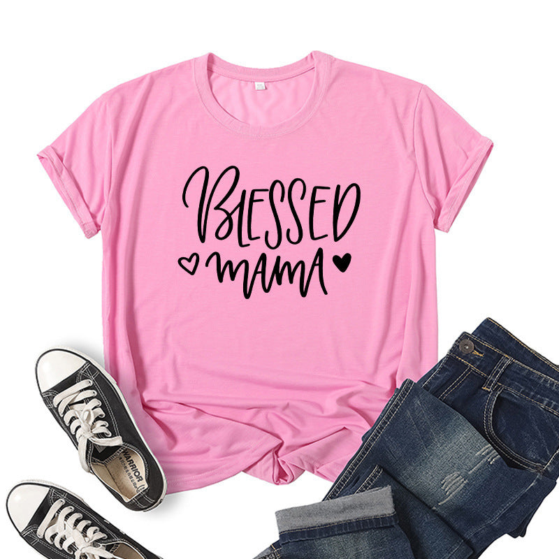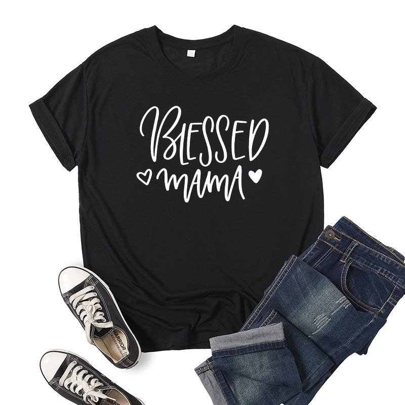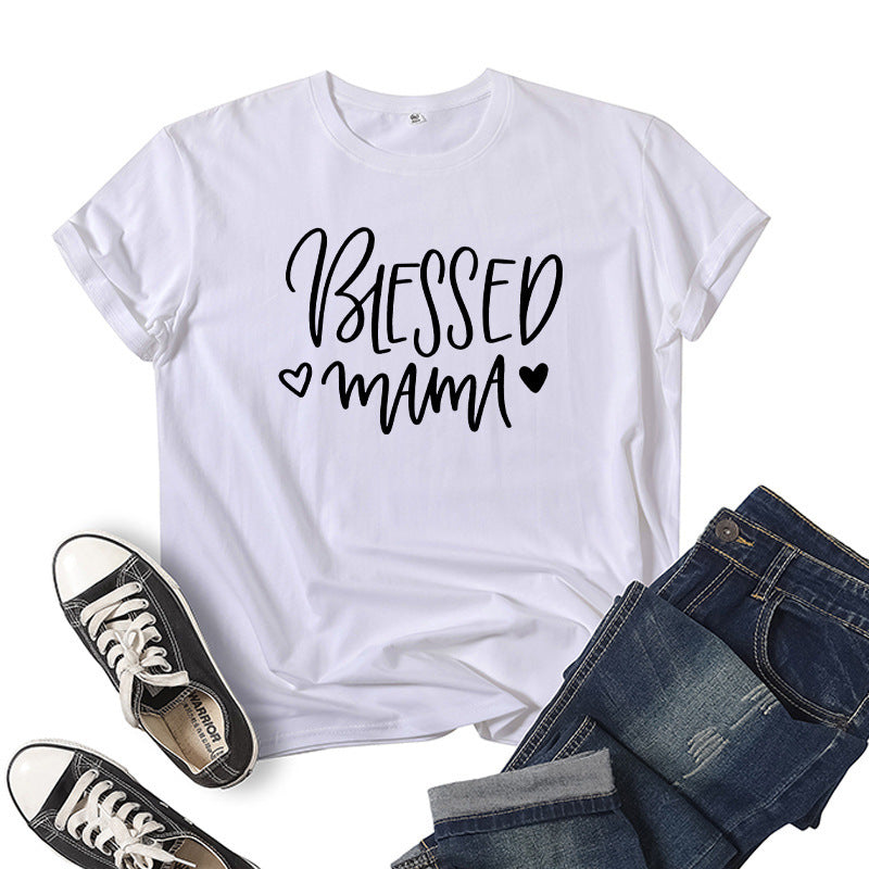 Boy Mama T Shirt Blessed Mama Printed Short Sleeve round Neck T-shirt