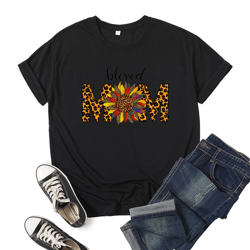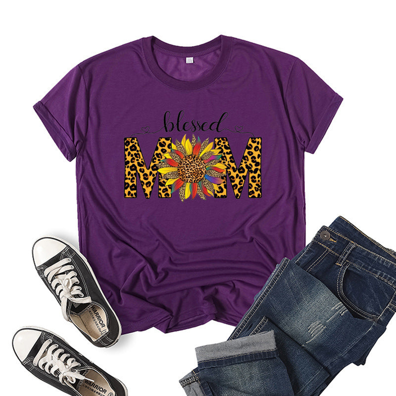 Boy Mama T Shirt Sunflower Blessed Mama Printed Short Sleeve round Neck T-shirt