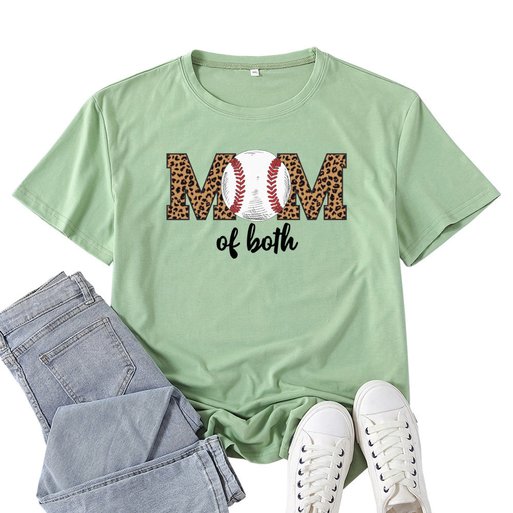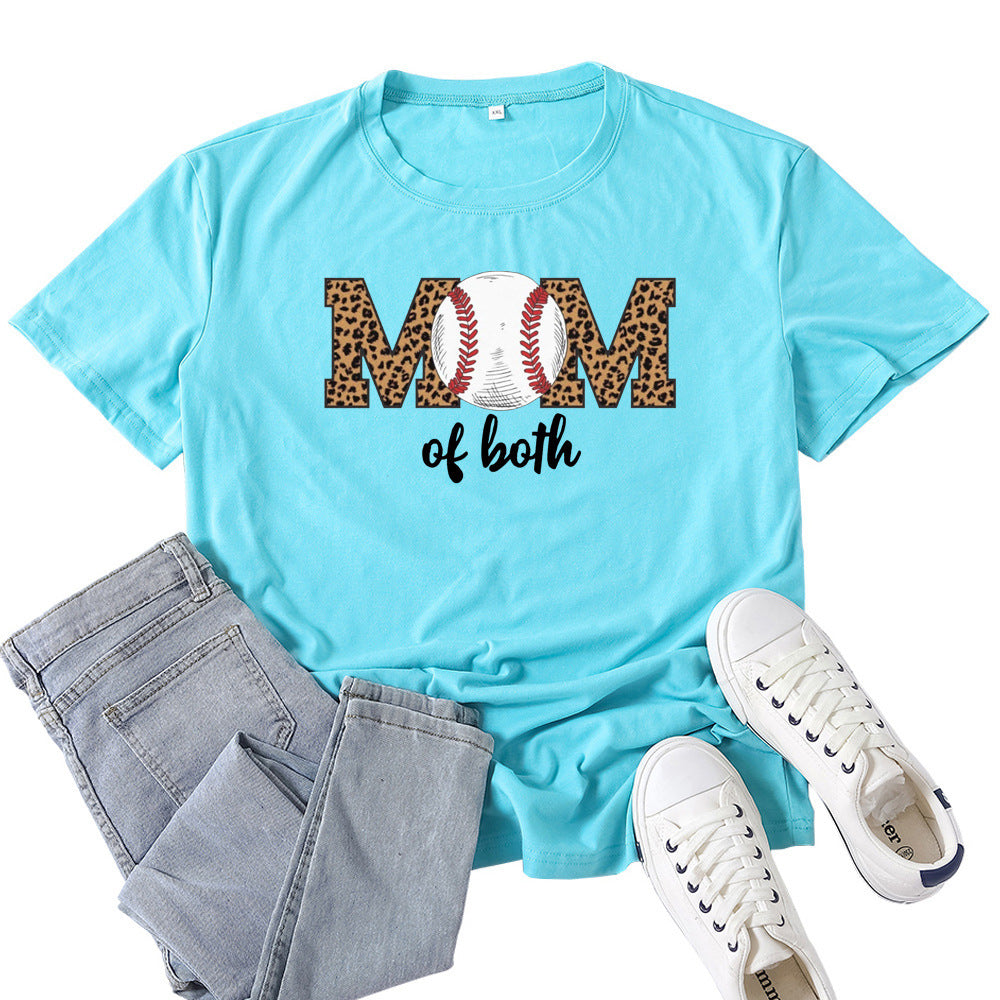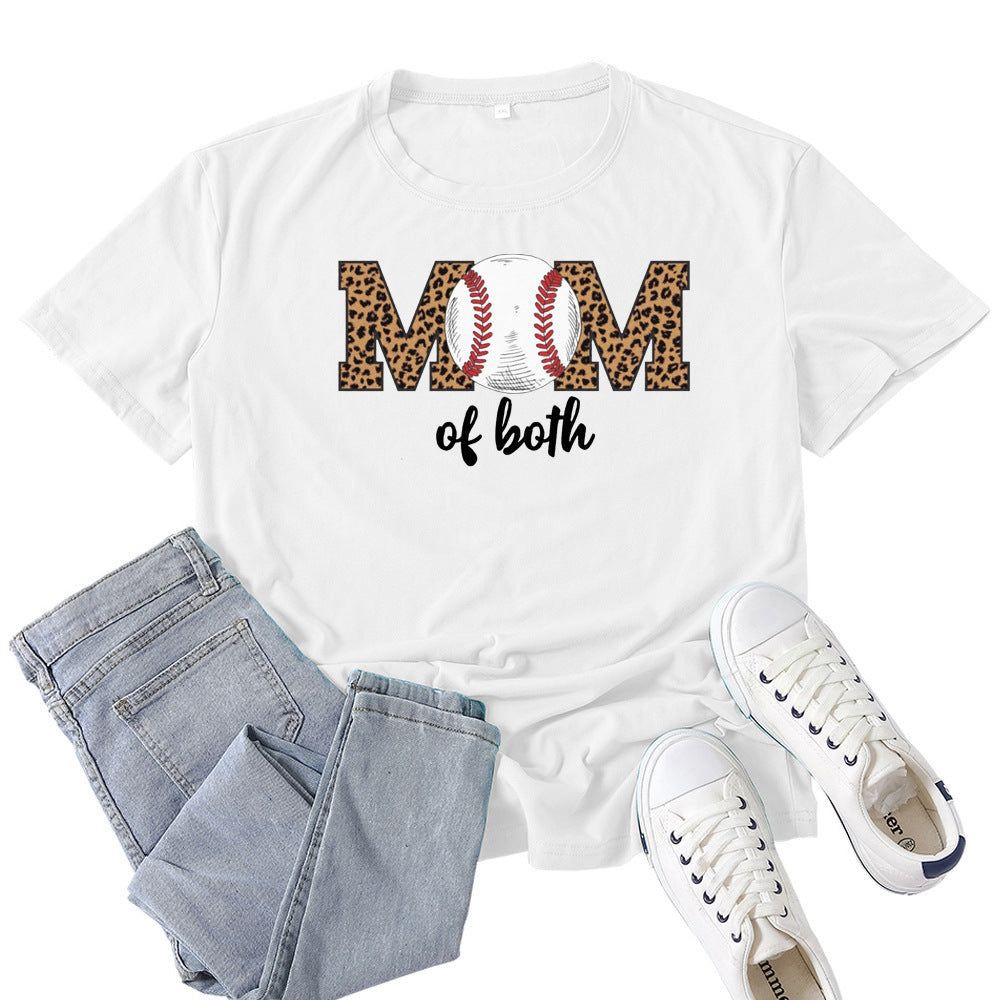 Boy Mama T Shirts Baseball Mama Leopard Print Letter Print T-shirt