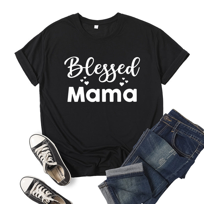 Boy Mama T Shirts Blessed Mama Printed Short-Sleeved Top