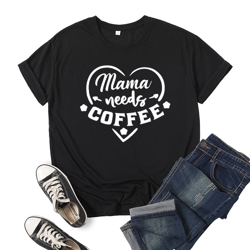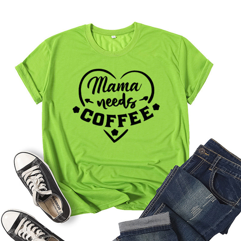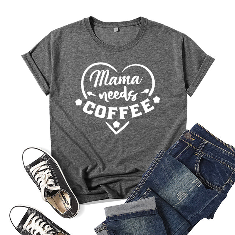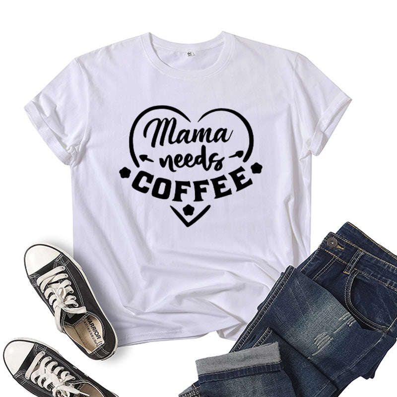 Boy Mama T Shirts Mama Needs Coffee Coffee Printing Short Sleeve round Neck T-shirt