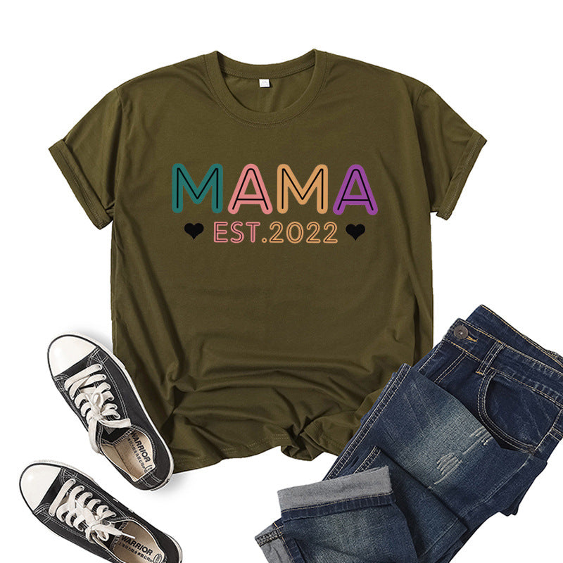 Boy Mama T Shirt Mama Est Printed Short Sleeve round Neck T-shirt