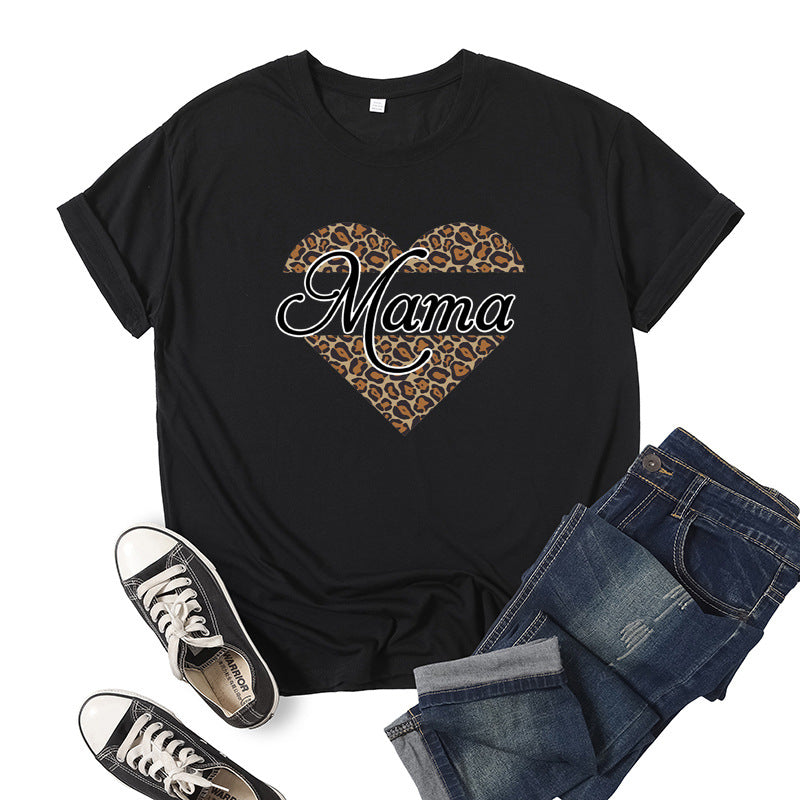 Boy Mama T Shirt Leopard Print Love Mama Printed Short Sleeve round Neck T-shirt