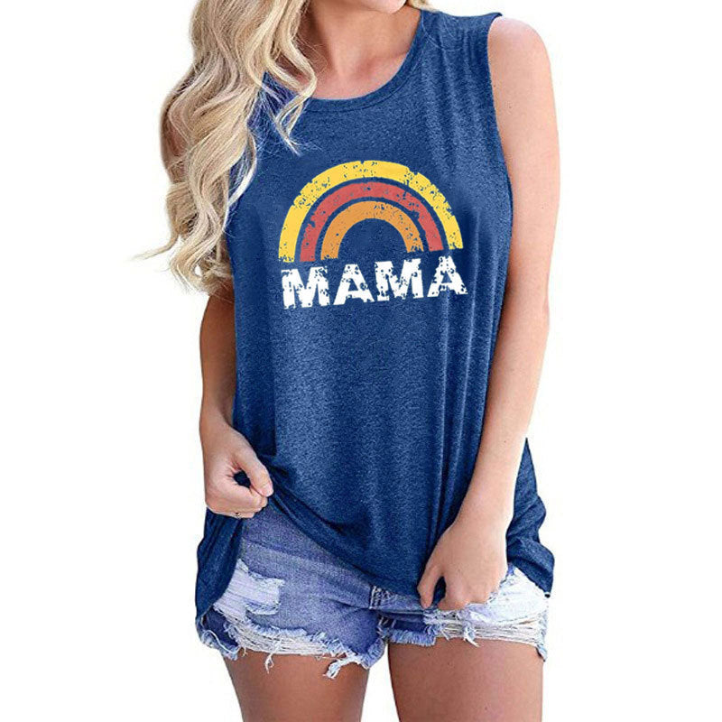 Boy Mama T Shirts Women's Vest Rainbow Mama Letter Printed round Neck Sleeveless Vest