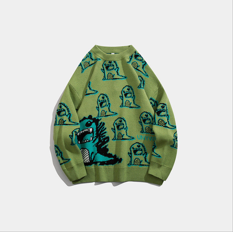 Dinosaur Sweaters Loose round Neck Sweater