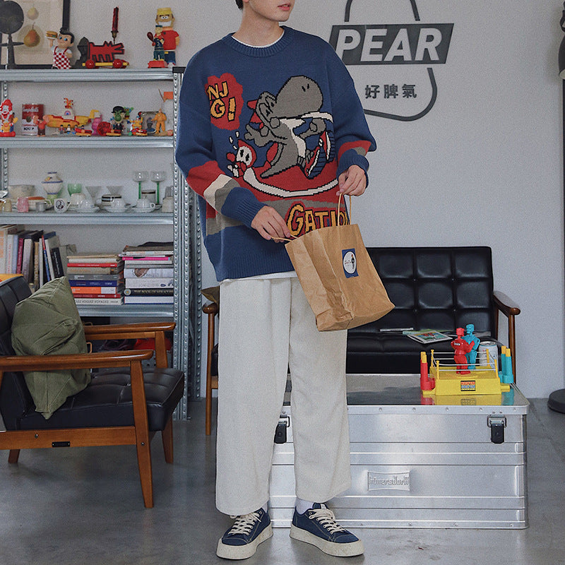 Dinosaur Sweaters Dinosaur Printed Sweater round Neck Sweater