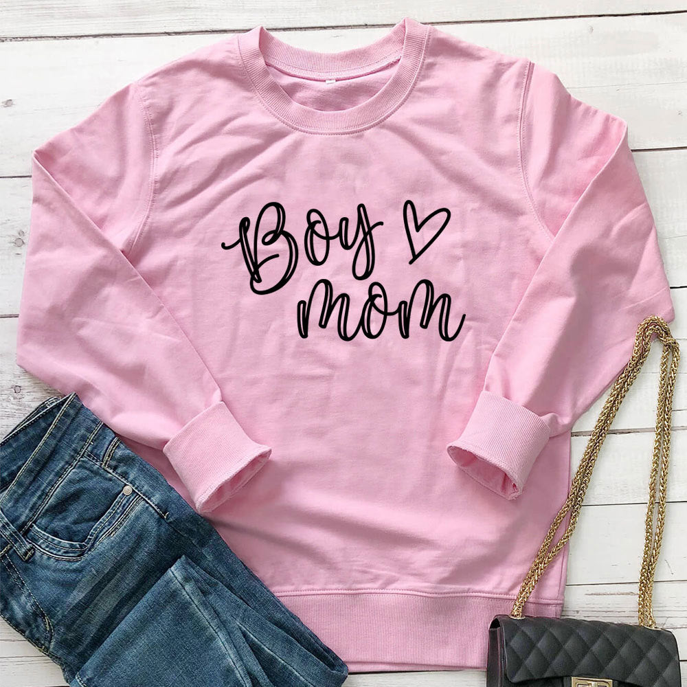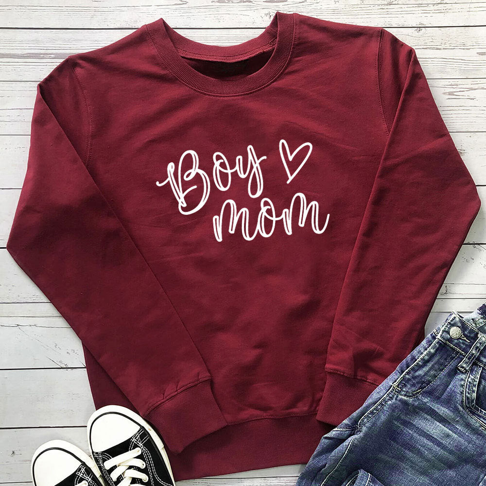 Boy Mama Hoodie Mother's Day Boy Mom Letter Love Heart Floral Print Long Sleeve Pullover