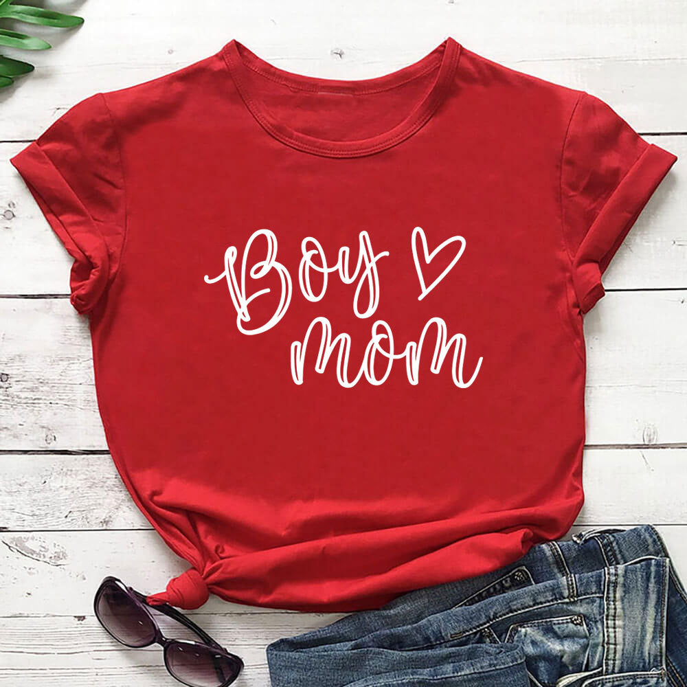 Boy Mama Hoodie Mother's Day Boy Mom Letter Heart Printing round Neck T-shirt