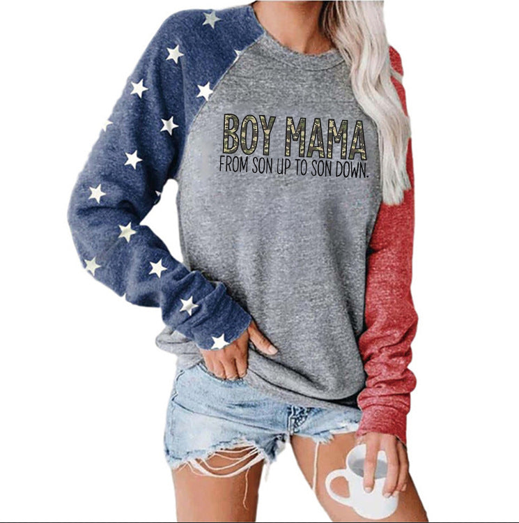Boy Mama Boy Mama Letter Print Loose Long Sleeve Sweater