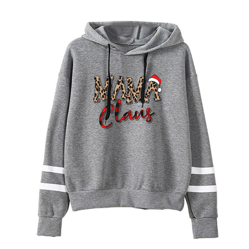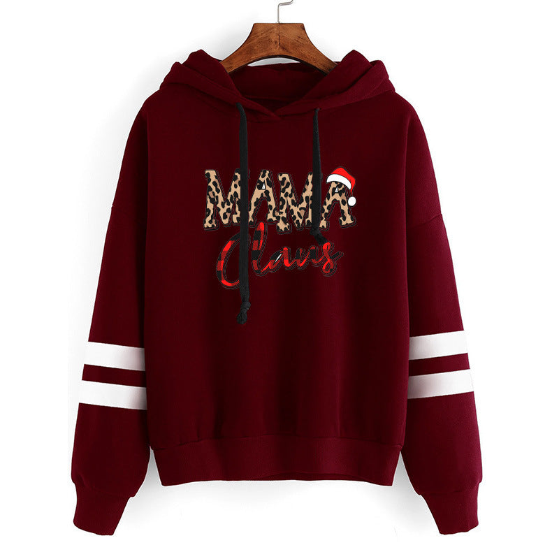 Boy Mama Hoodie Christmas Leopard Print Parallel Bars and Stripes Sweatshirt