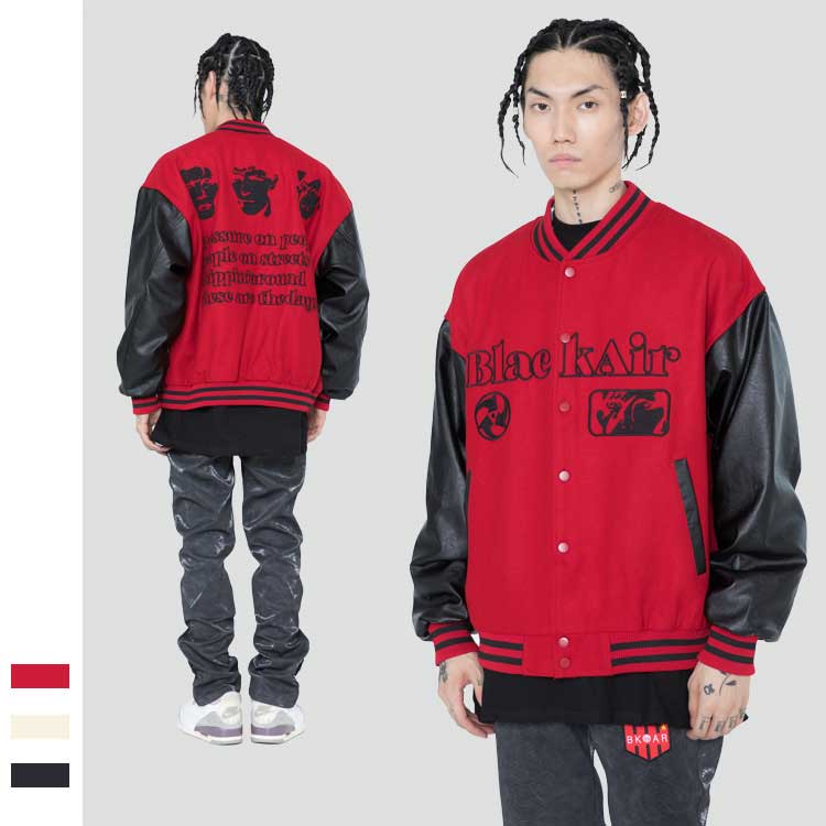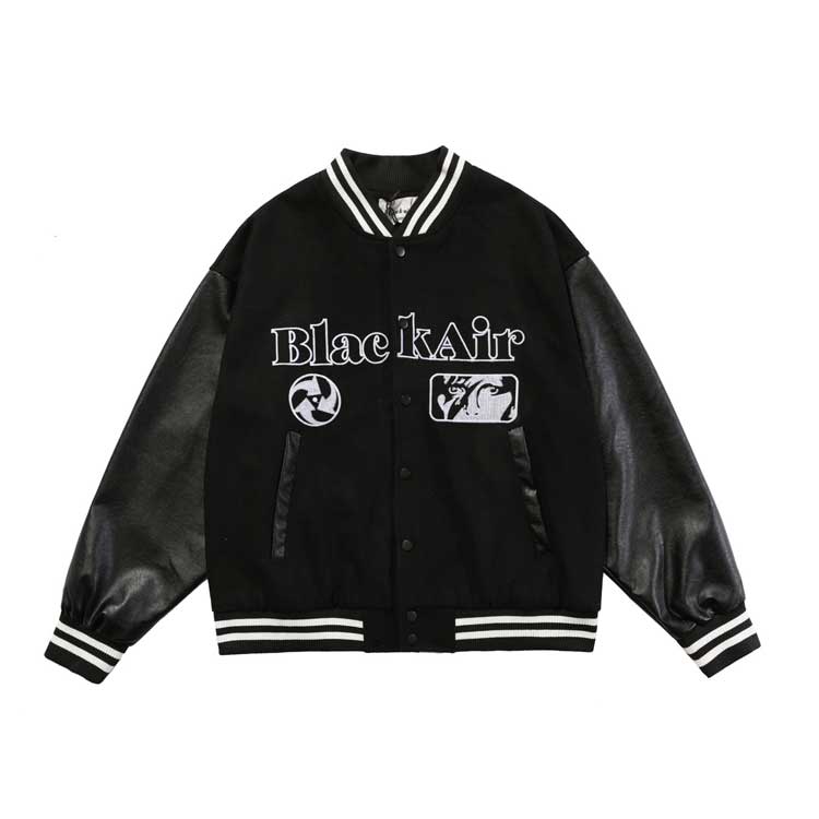 Blackair Jacket Blackair Vintage Fall Winter Coat PU Leather Sleeve Portrait Embroidered Baseball Jacket