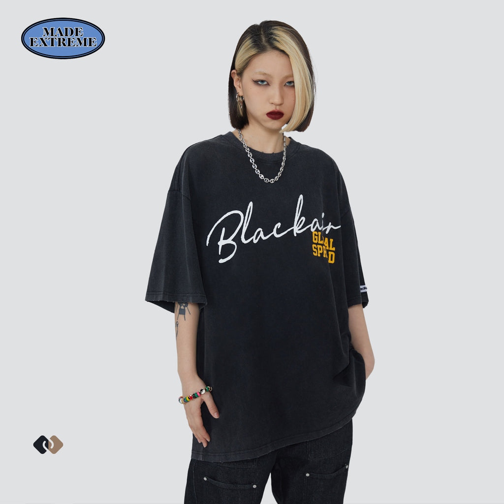 Blackair T Shirt Retro Short Sleeve Loose round Neck T-shirt