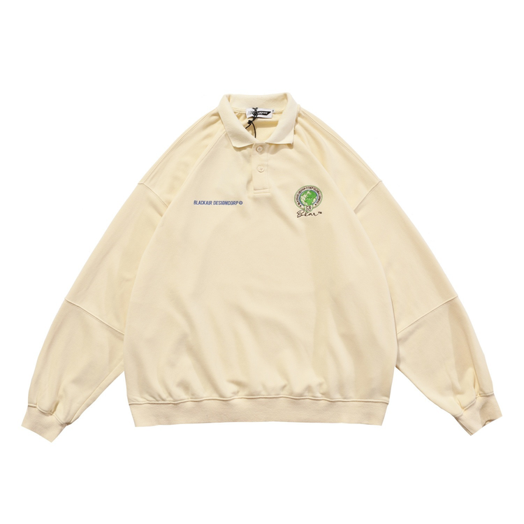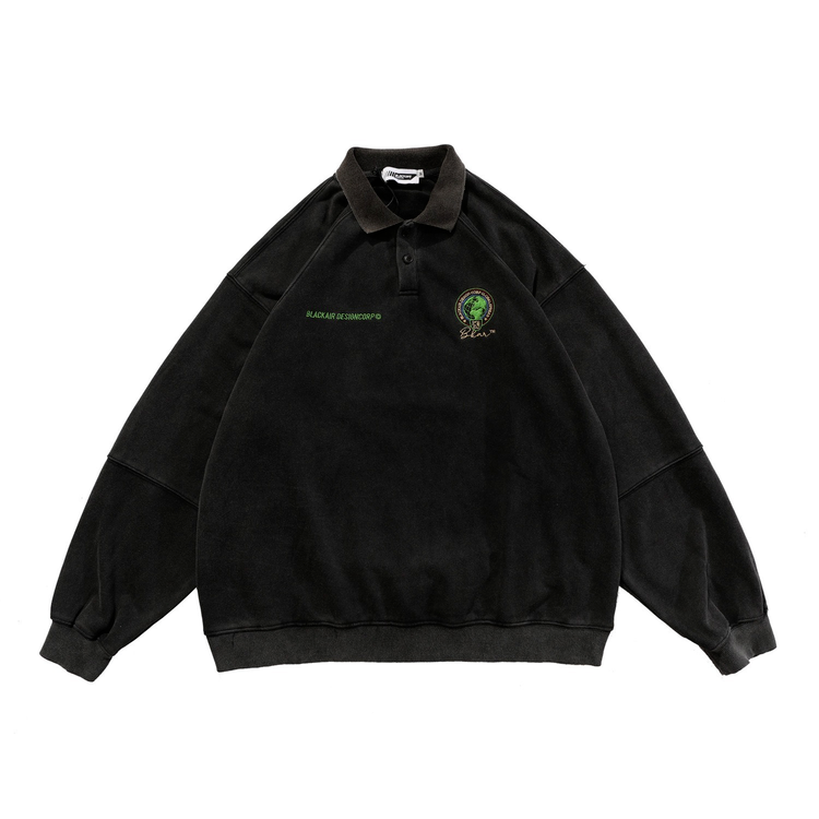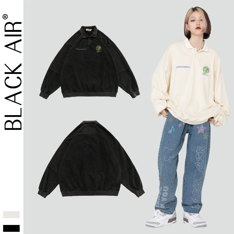 Blackair T Shirt Autumn Winter Retro Polo Collar Embroidered Sweater