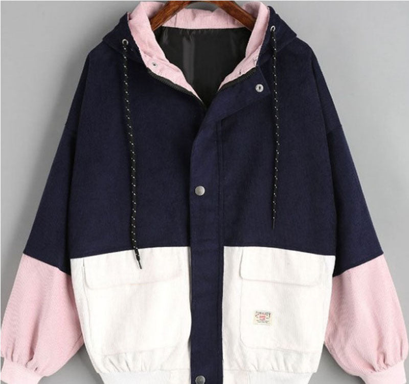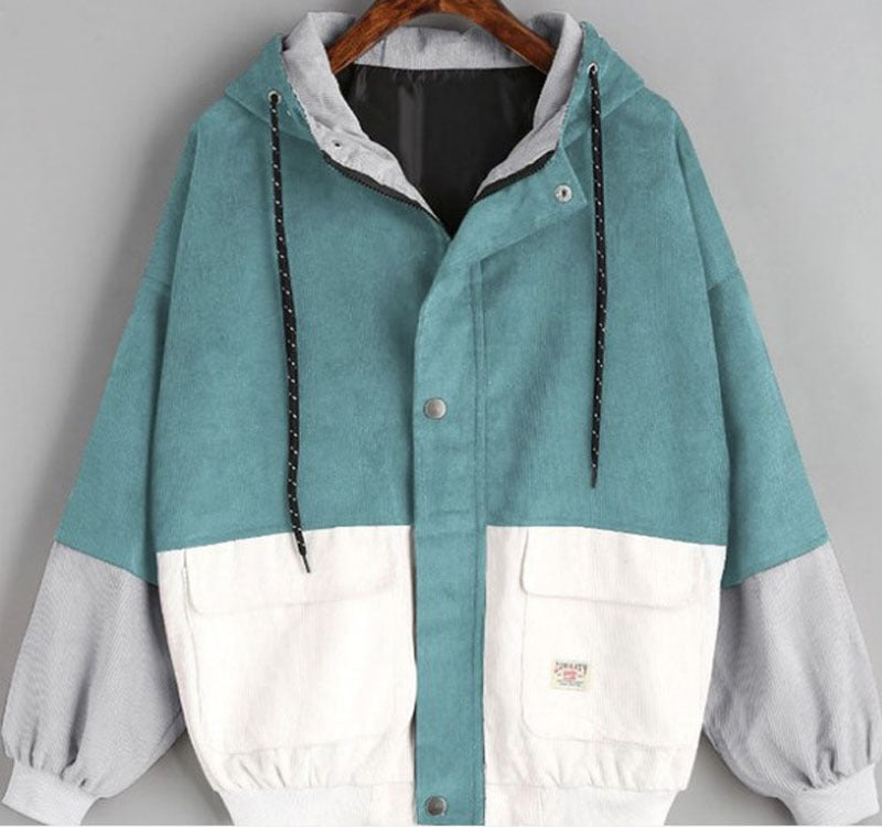 Corduroy Patch Jacket Loose Color Matching Hooded Baseball Uniform Corduroy