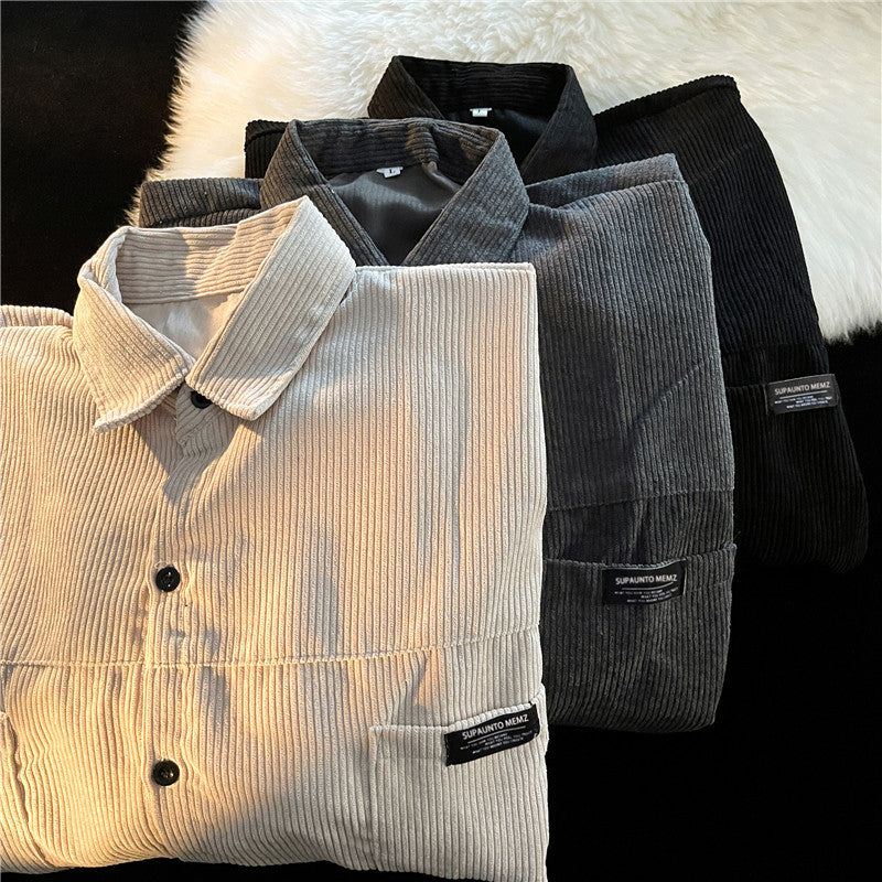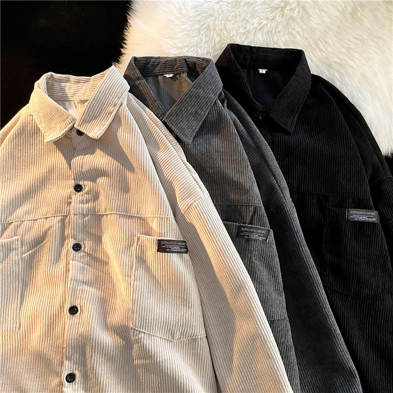 Corduroy Patch Jacket Corduroy Shirt Men's Long Sleeve Retro Casual Spring and Autumn