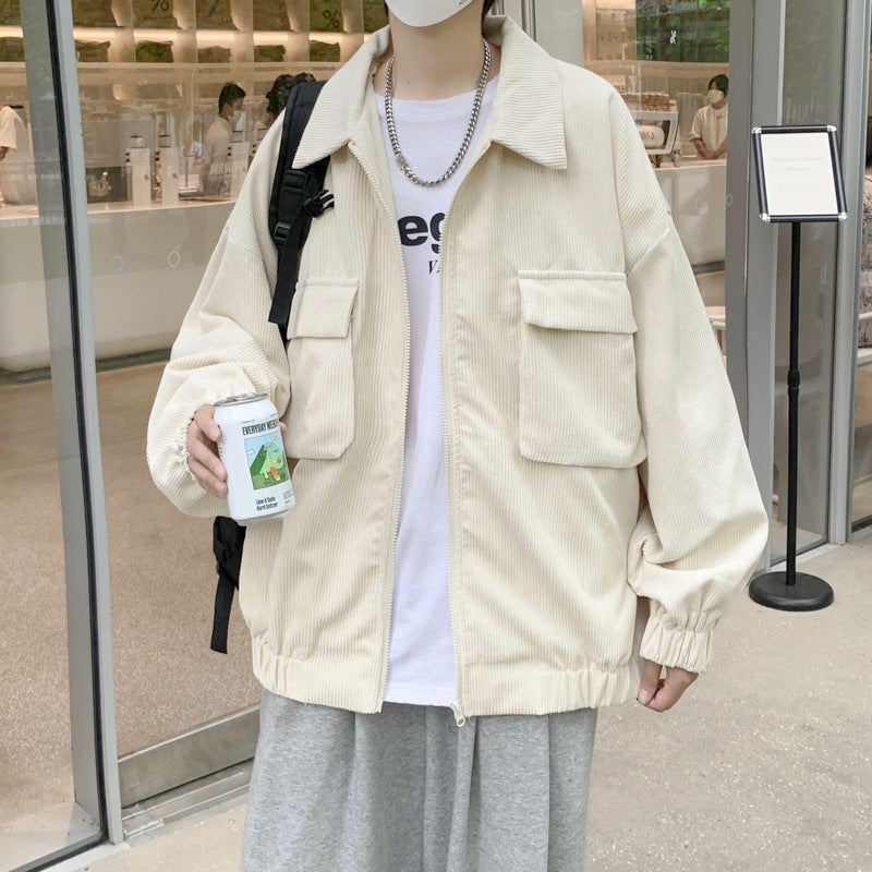 Corduroy Patch Jacket Autumn Workwear Jacket Men's Loose Casual