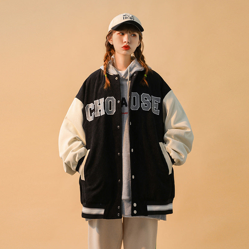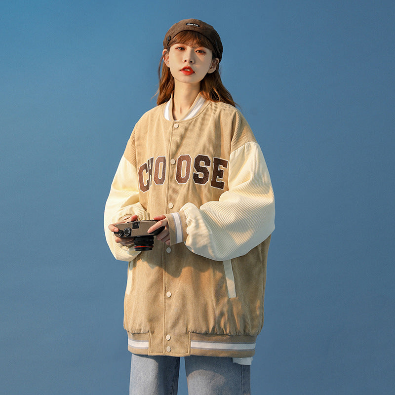 Corduroy Patch Jacket Baseball Uniform Men's Spring and Autumn Baggy Coat