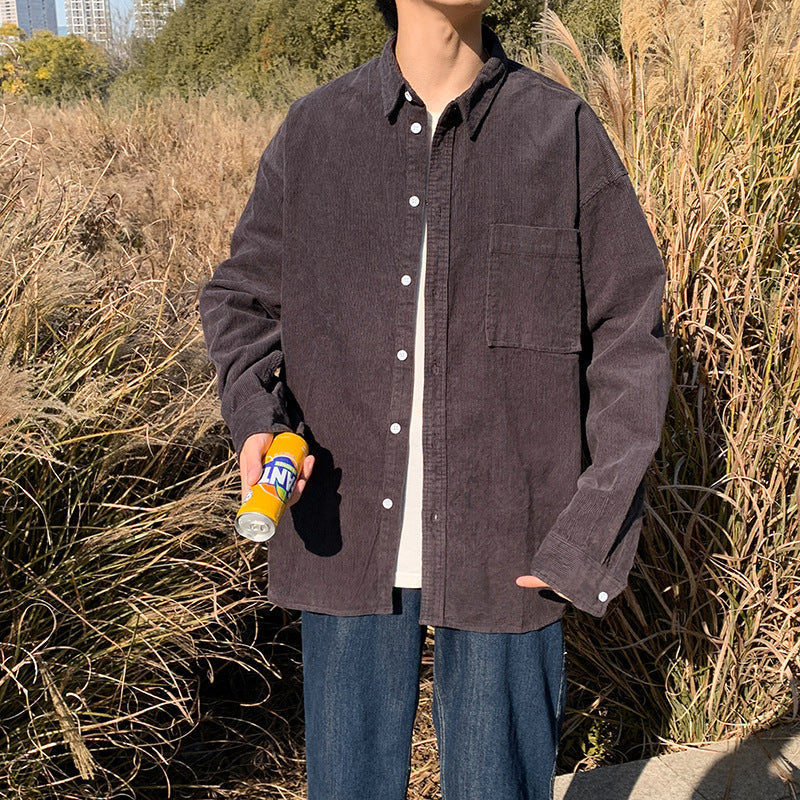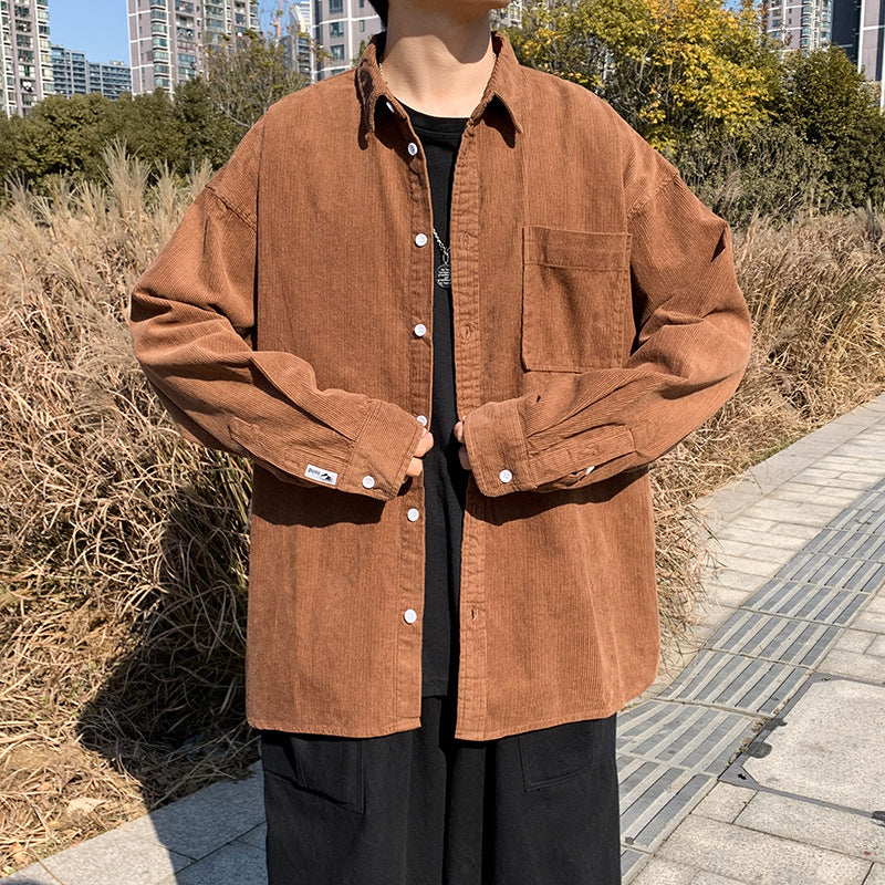 Corduroy Patch Jacket Corduroy Shirt Men Baggy Coat
