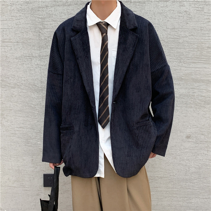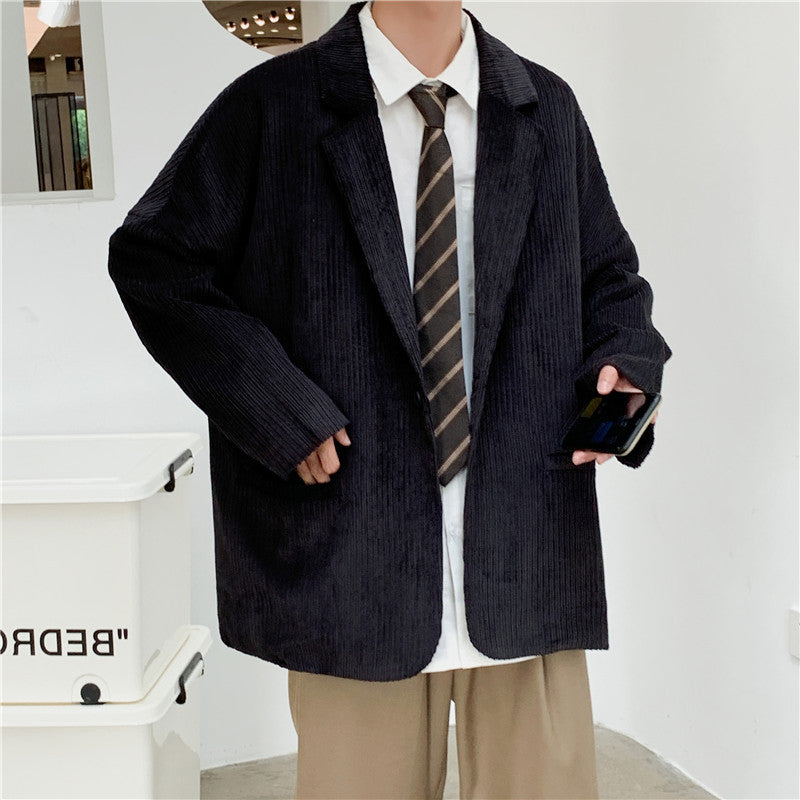 Corduroy Patch Jacket Spring and Autumn Retro Loose Casual Coat