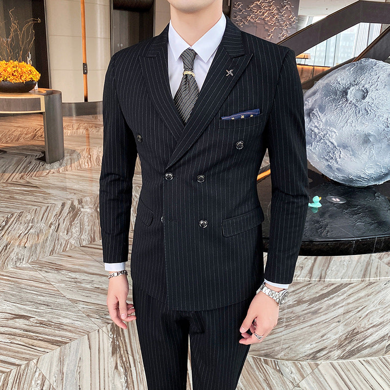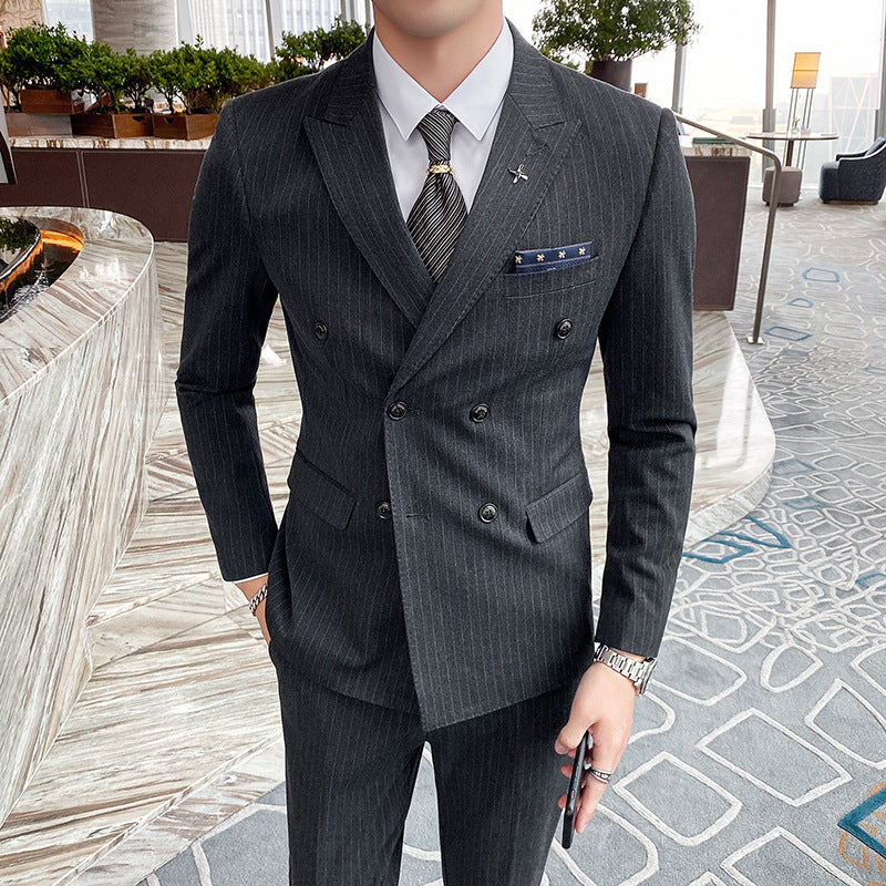 Double Brewed Seersucker Suit Autumn Men's Suit Slim Striped