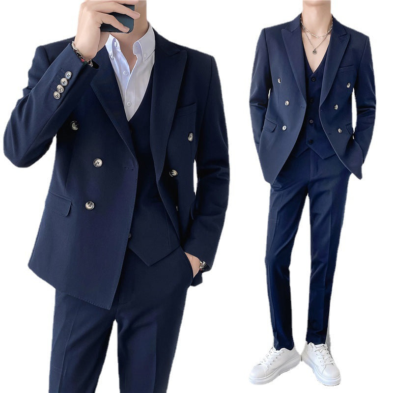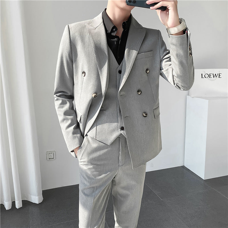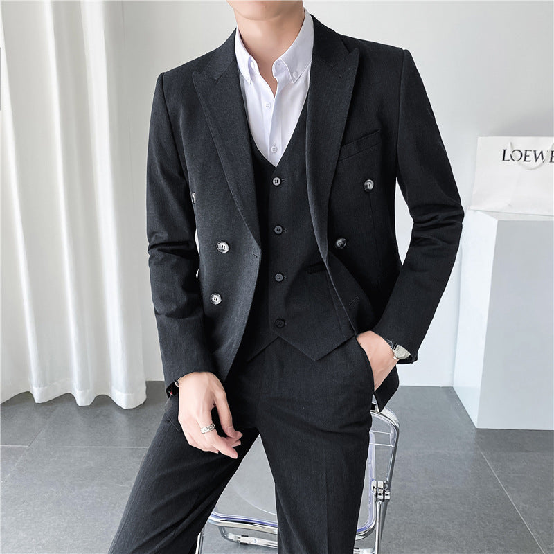 Double Brewed Seersucker Suit Men's Slim Fit Casual Formal Wear Three-Piece Suit
