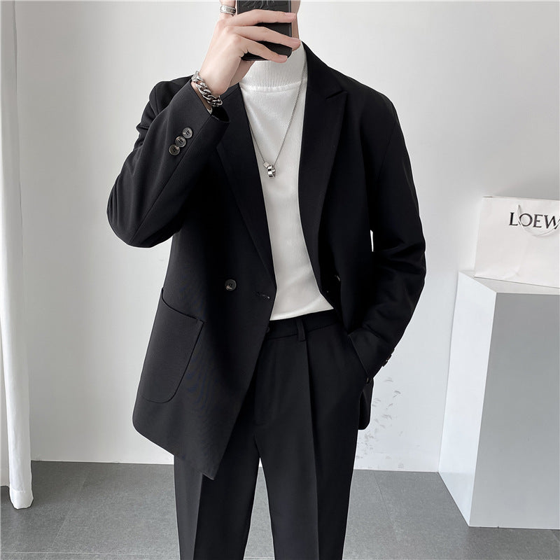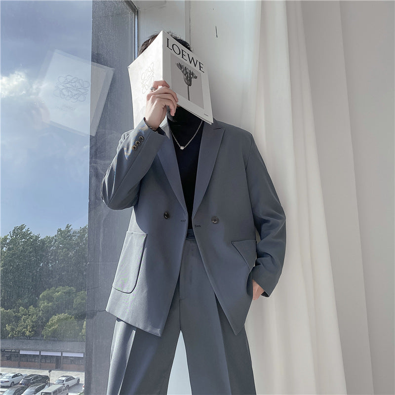 Double Brewed Seersucker Suit Spring Men's Casual Jacket Baggy Coat