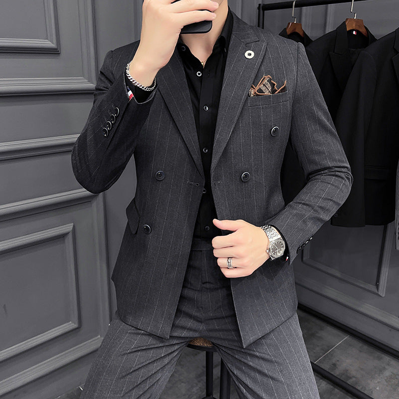 Double Brewed Seersucker Suit Men's Suit Set Slim Striped Casual