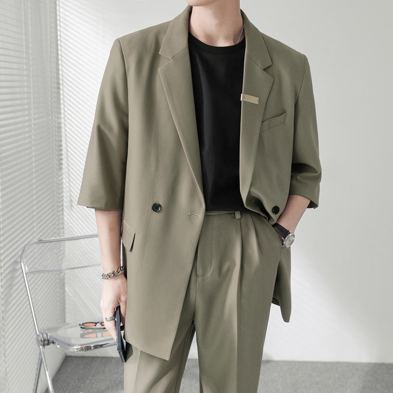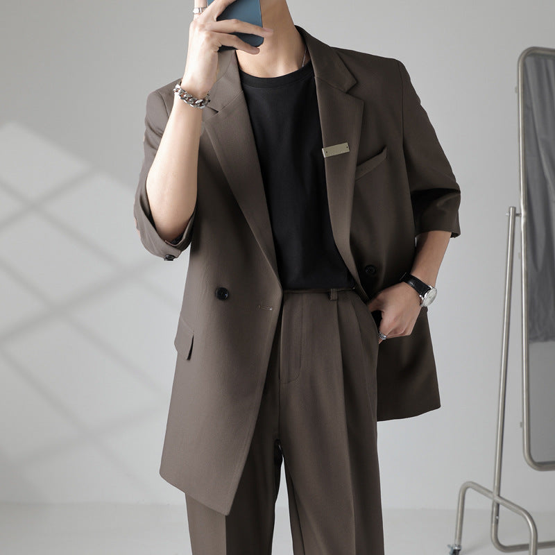 Double Brewed Seersucker Suit Autumn and Winter Leisure Cotton Solid Gray Loose