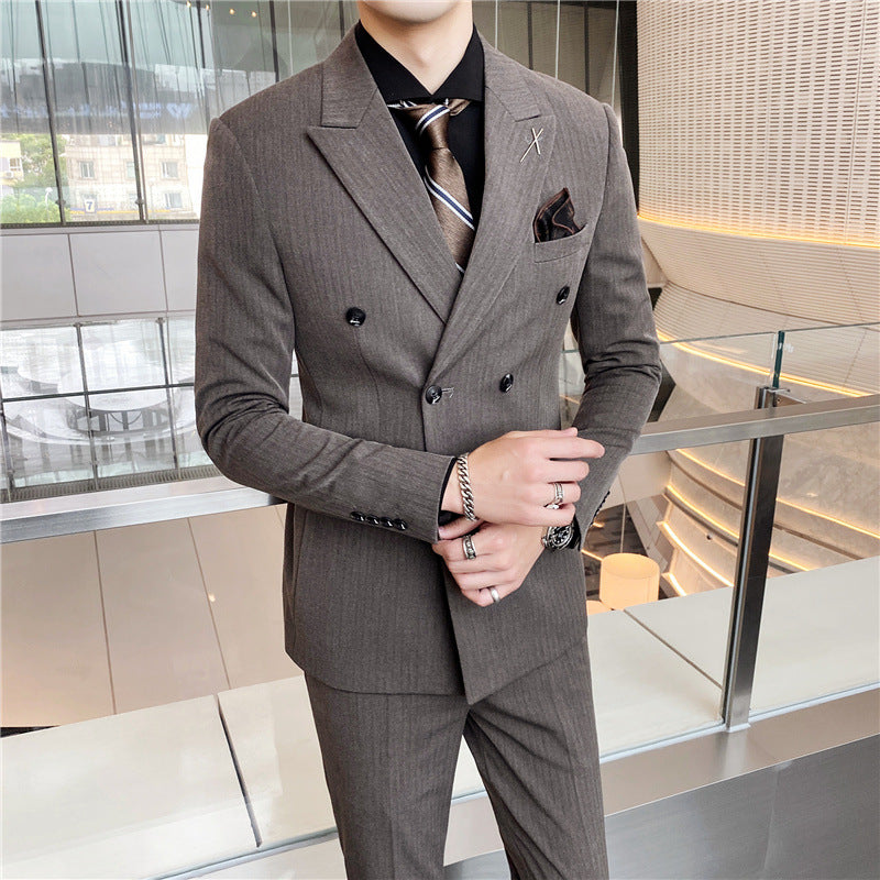 Double Brewed Seersucker Suit Male Youth Fashion Suit